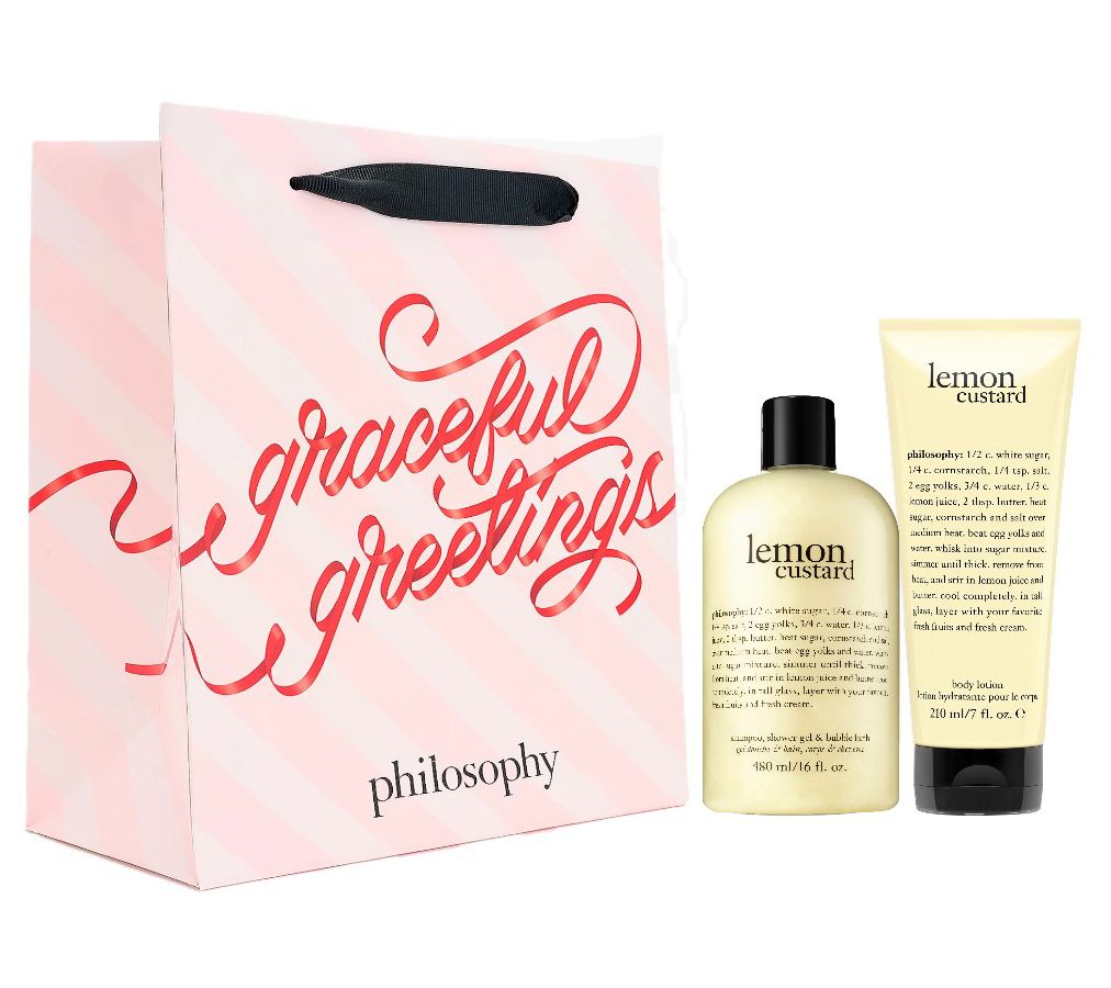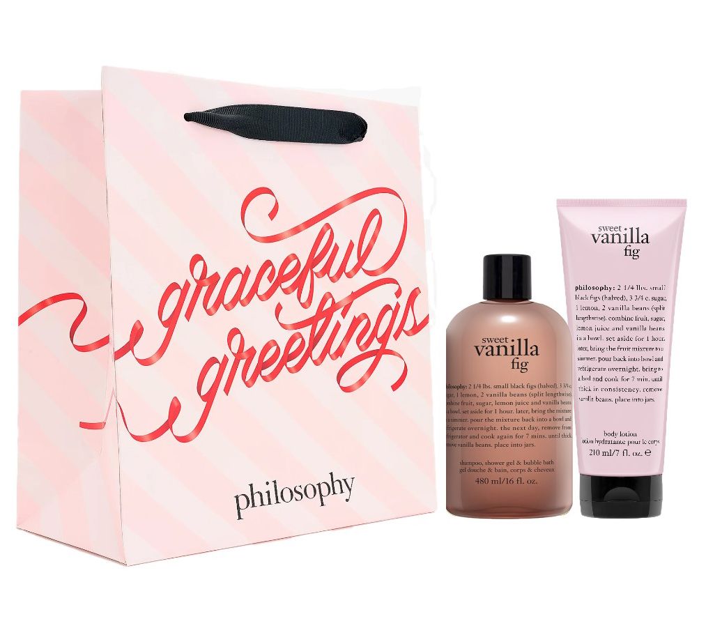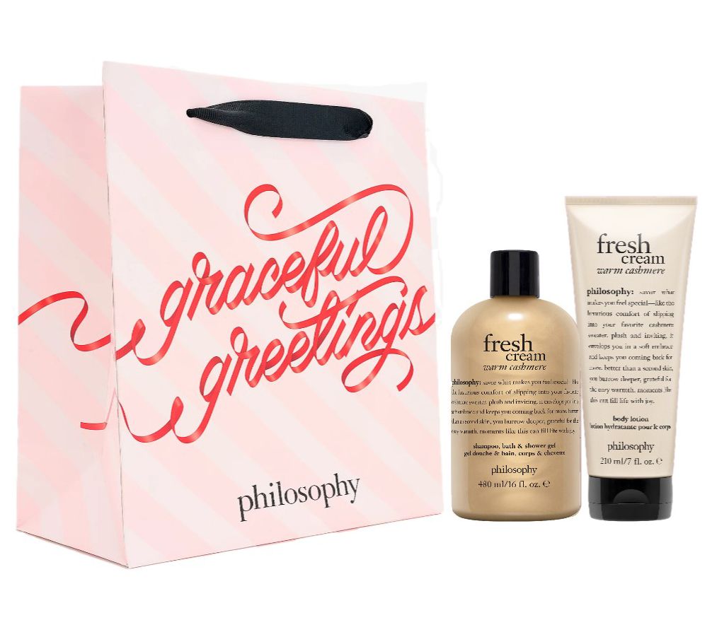Cleanse and hydrate with this bath and body gift set from philosophy. The 3-in-1 shower gel formula provides a rich, foaming lather to cleanse and condition, leaving skin and hair feeling silky soft. The body lotion leaves skin softly scented.