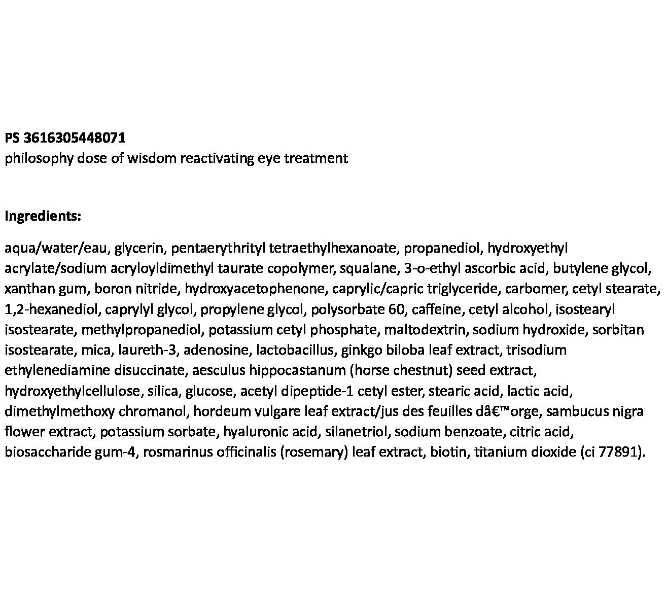 philosophy's dose of wisdom brightening eye cream with hyaluronic acid hydrates and smooths. Eyes appear brighter.