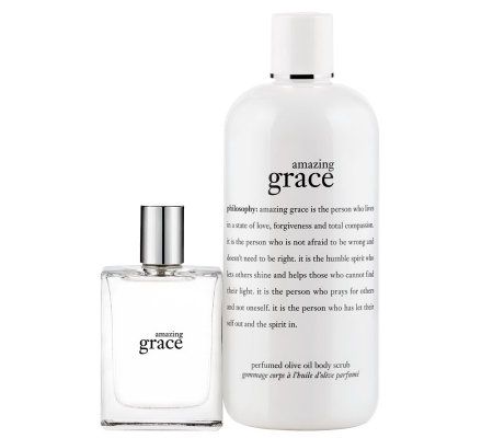 Why is it different: Achieve velvety soft, beautifully scented skin with philosophy's luxe grace duo, featuring perfumed olive oil body scrub and eau de parfum in your choice of amazing grace, pure grace, or baby grace fragrances. The super-emollient body scrub features naturally derived exfoliants, including diatomaceous earth and sea salt, to gently resurface and help soften rough, dry skin, while olive oil helps condition and moisturize. Take your skin from velvety soft to beautifully scented with a spray of your favorite grace eau de parfum.