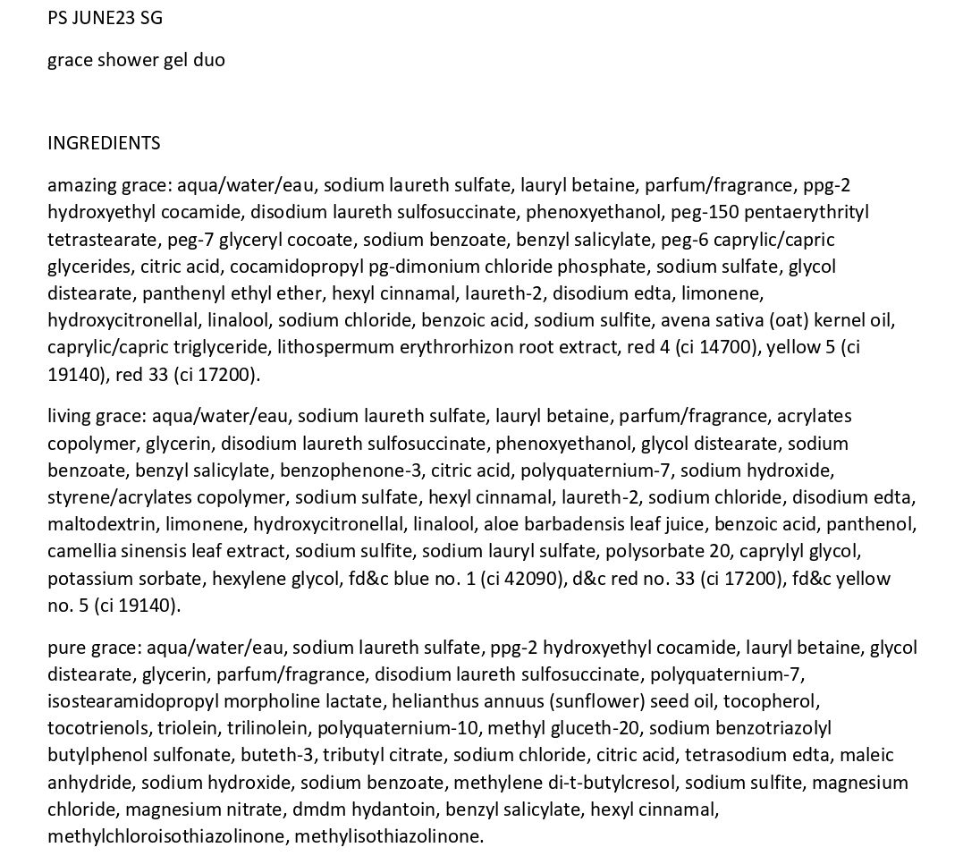 pure grace: a fragrance with a soap-and-water scent of water lily, leafy greens, and frosted musk that makes you feel like you just stepped out of the shower