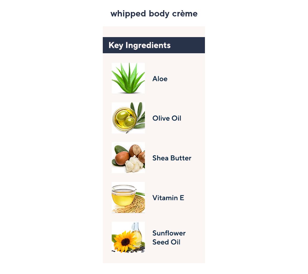 Moisturize and fragrance in a wonderful fragrance layering collection. The whipped body creme nourishes and hydrates skin with shea butter, olive oil, and aloe in a luxurious whipped yet dense luxe formula that melts in to skin leaving it silky-soft and lightly fragranced. Spritz the eau de toilette fragrance any time you want to gracefully lift your spirits.