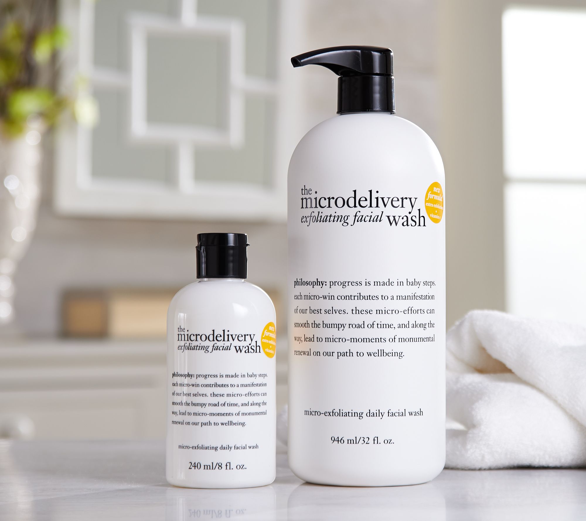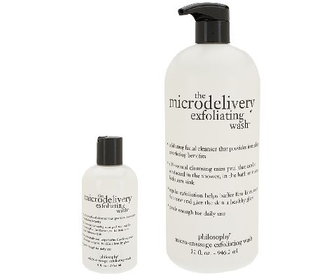 This replenishment duo features two convenient sizes of philosophy's the microdelivery exfoliating facial wash: an 8-oz size for day to day and a 32-oz size for refills. the microdelivery exfoliating facial wash is a mild facial cleanser designed to provide resurfacing benefits. Gentle enough to use daily, this unique formula is formulated with ingredients designed to leave skin feeling soft and smooth.