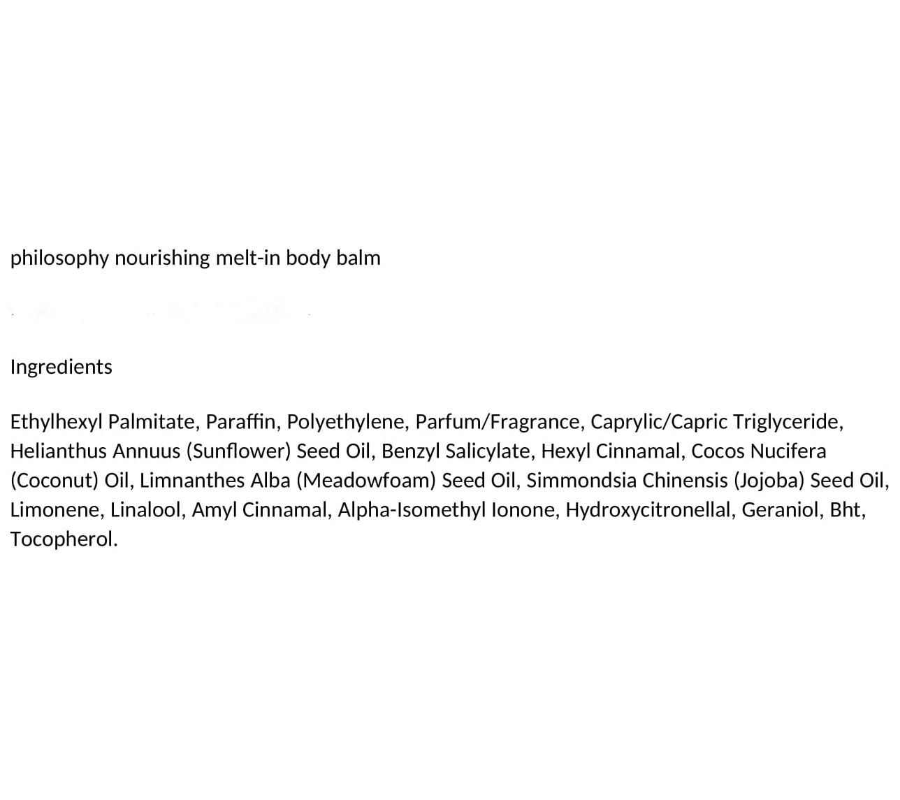 Experience the ultimate in hydration and luxurious body care with philosophy's nourishing melt-in body balm. It helps hydrate dry skin and provides a luminous glow while leaving skin delicately scented with your favorite philosophy fine fragrance.