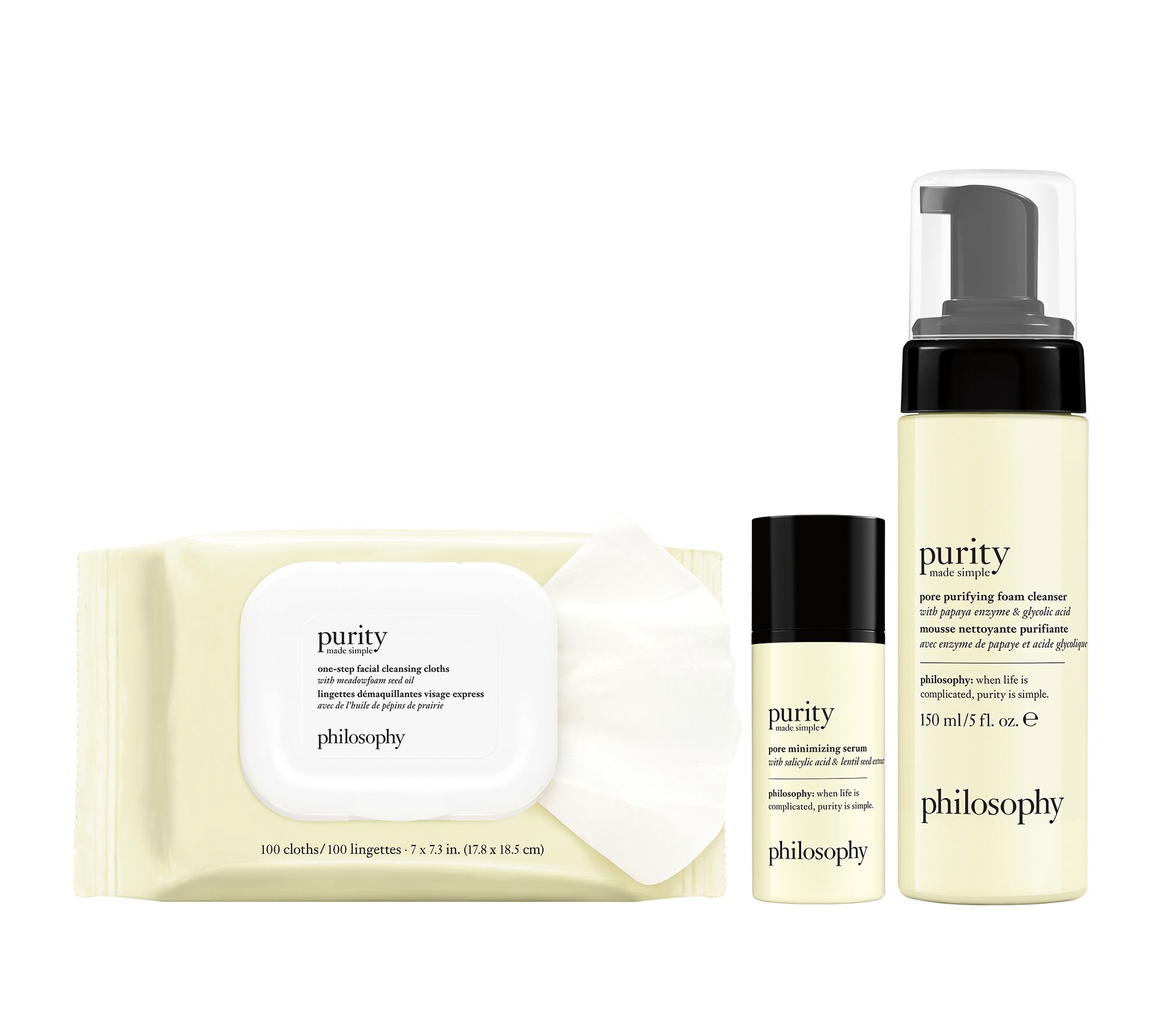 Keep your skin clean, minimize pores, and maximize purification with this purity made simple pore-fecting kit from philosophy. The purity purifying foam cleanser is a multi-action wash that cleanses, helps improve the look of pores, and leaves skin conditioned. When used as directed, it helps removes impurities from pores and improves the overall appearance of skin.
