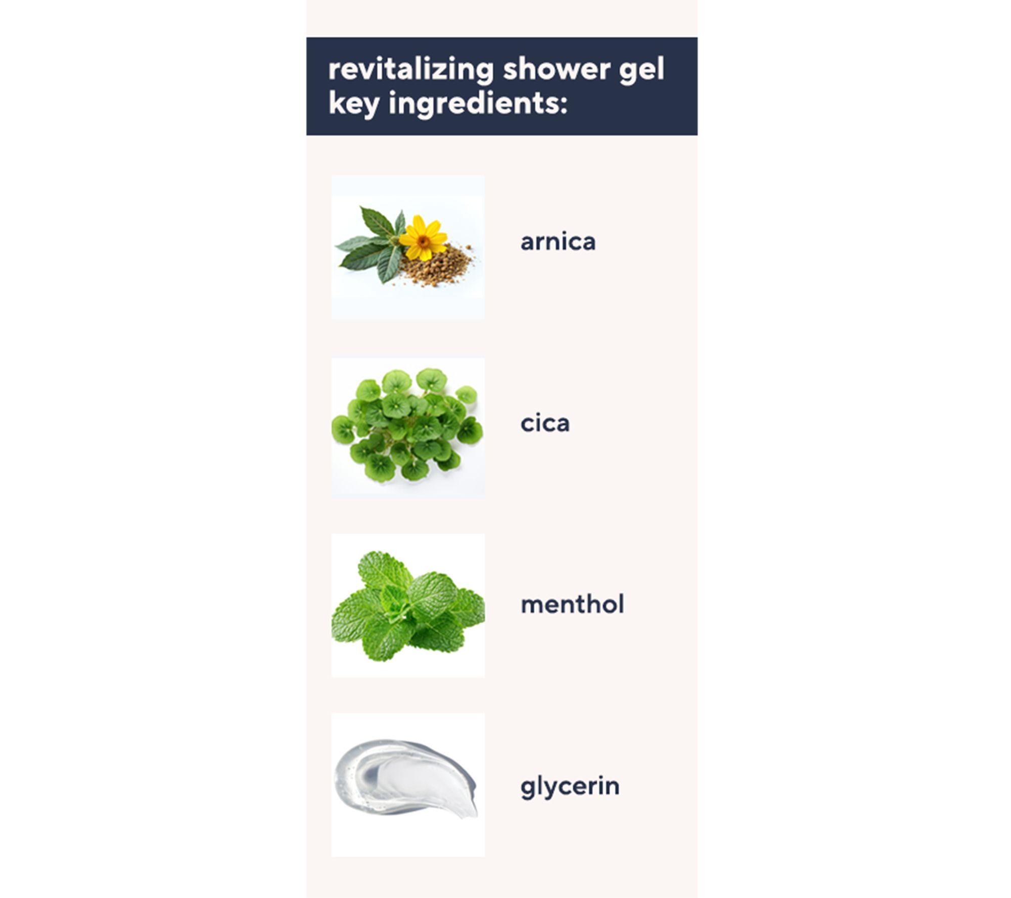 Designed to deliver a refreshing cleanse that leaves a topical cool sensation on the skin after rinsing, these revitalizing shower gels feature delightful scents you'll love. They're formulated with arnica (an antioxidant that may help fight against free radical aggressors and hydrate the skin), menthol, and glycerin (a powerhouse humectant that helps skin maintain hydration).