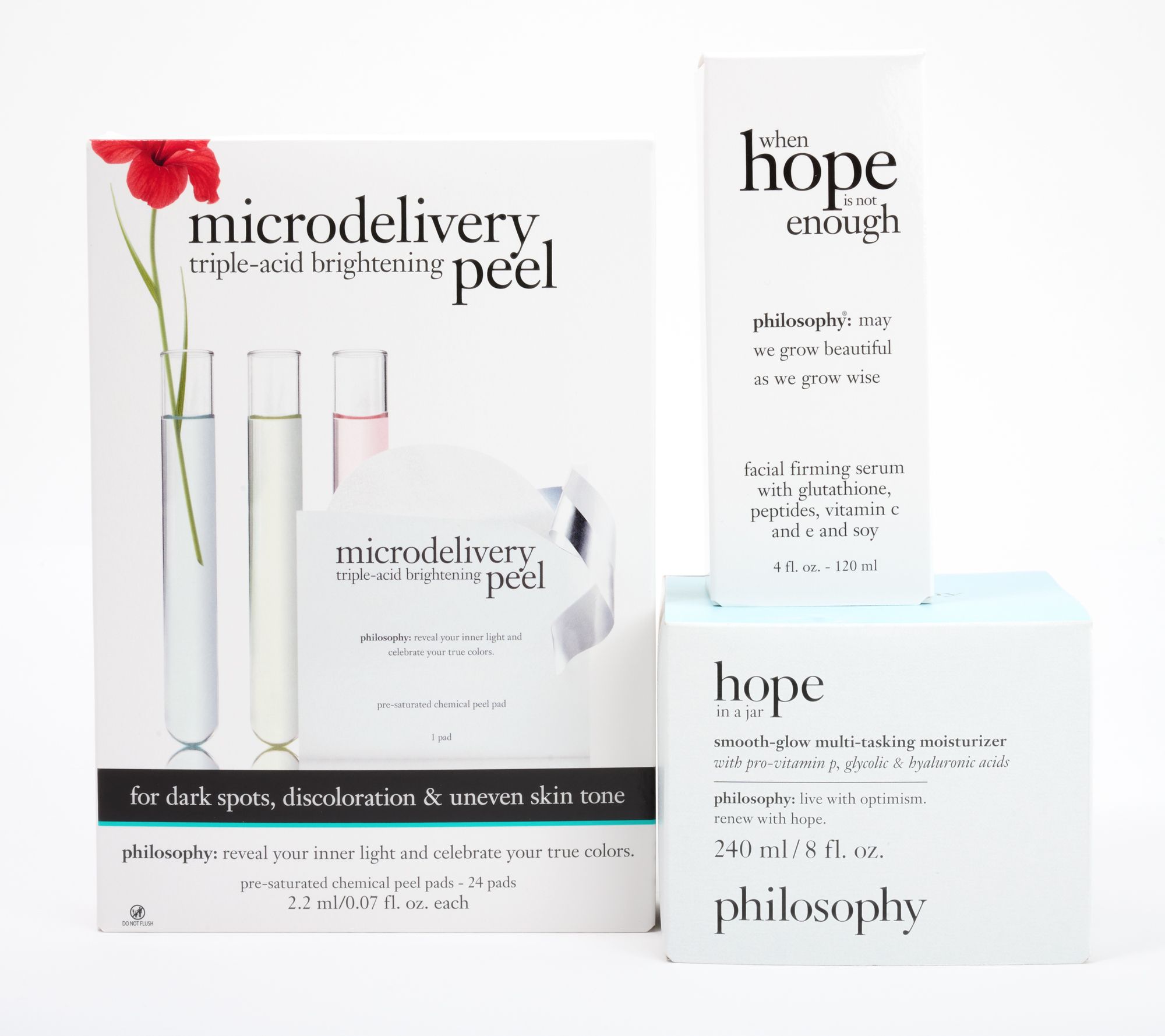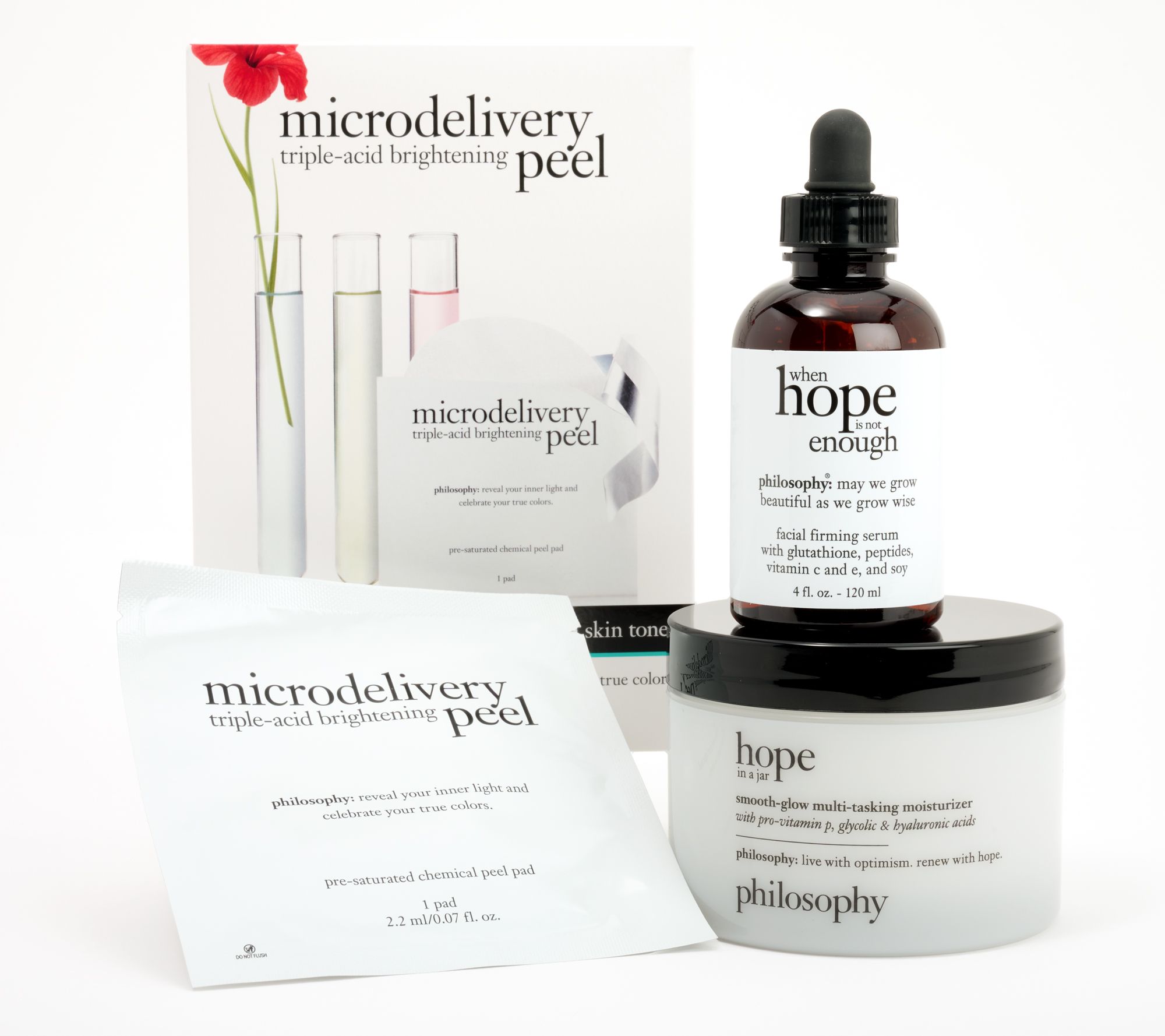 • Each shipment includes 24-count microdelivery triple-acid brightening peel pads, 8-oz hope in a jar smooth-glow multi-tasking moisturizer, and 4-oz when hope is not enough facial firming serum; shipments arrive approximately every six months for one year
