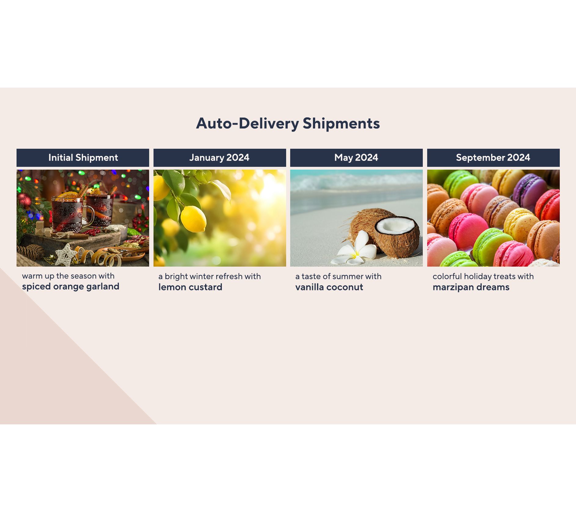 And with this Auto-Delivery plan, you'll receive a new shipment approximately every four months for a year, with a different shower gel scent in each shipment.