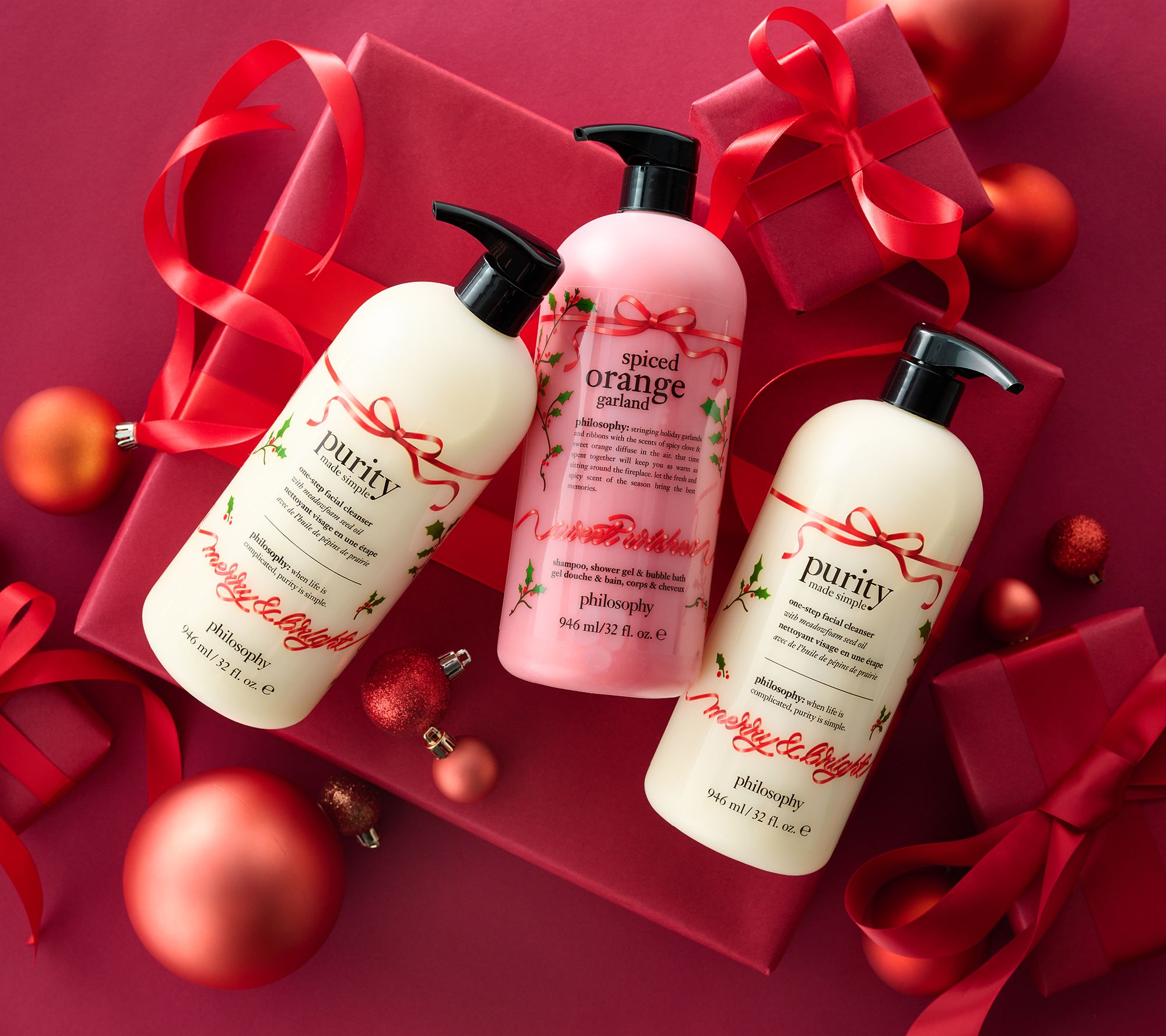 Plus, you'll also receive spiced orange garland shampoo, bath & shower gel. The 3-in-1 formula cleanses your skin and hair (and gives you the perfect bubble bath!). Inhale the festive scent of crisp red apple, spicy clove, zesty orange peel, and aromatic citrus. Your skin will feel clean, soft, and comfortable with a gentle cushion of hydration.