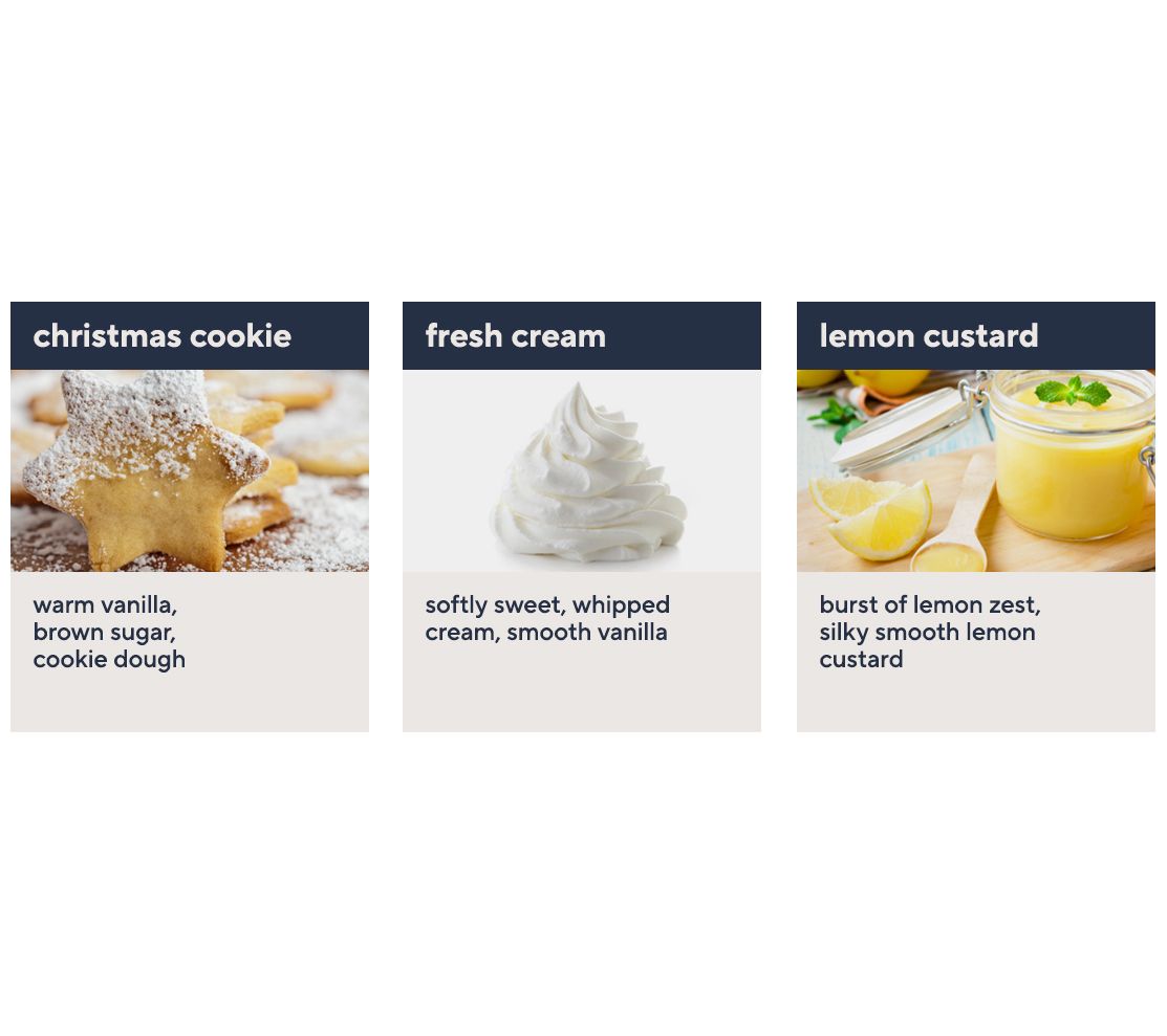 lemon custard: cheerful and energizing, lemon zest with a silky, smooth custard finish