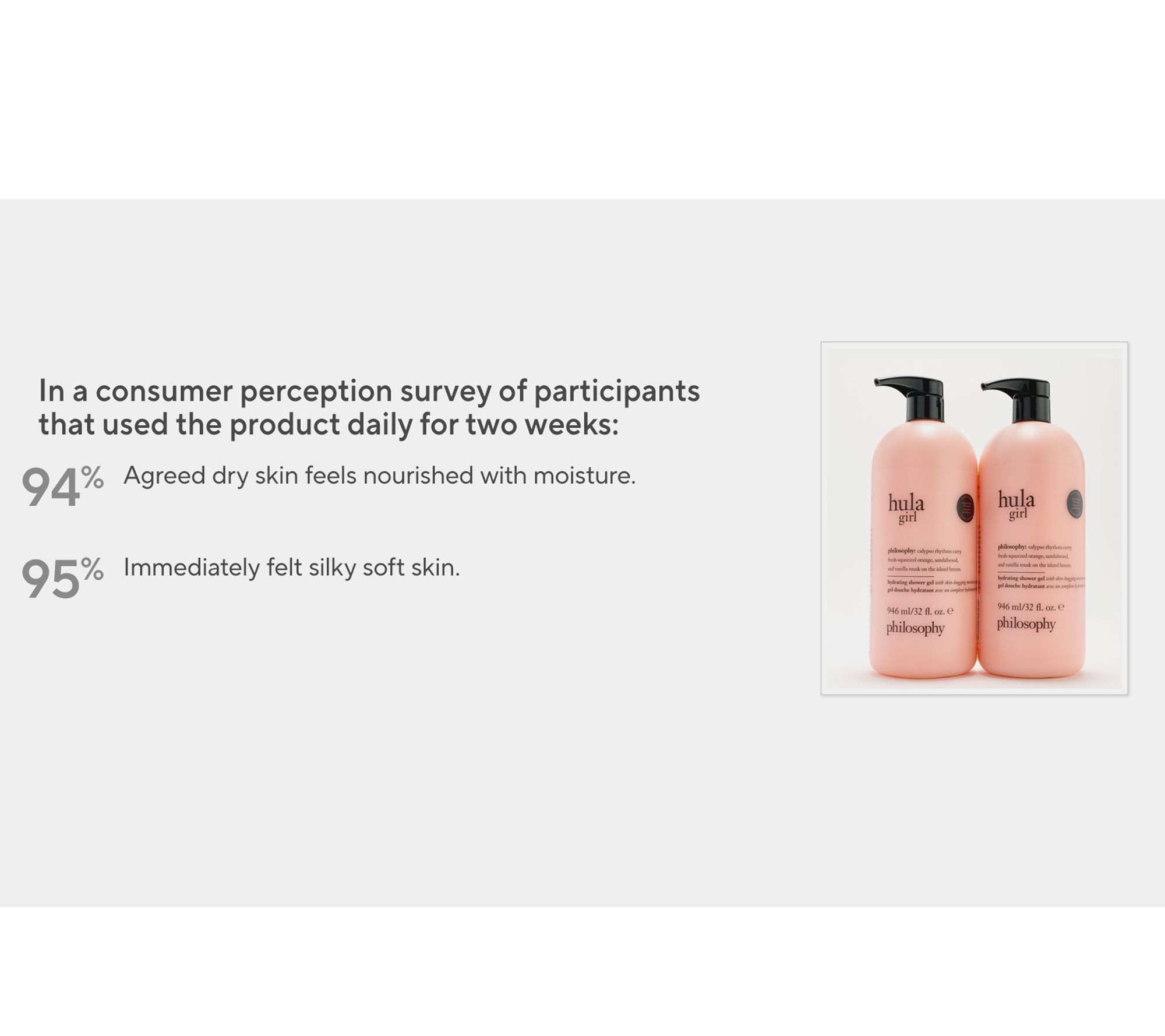Enjoy a carefree summer with philosophy’s upgraded sulfate-free hydrating shower gel duo, formulated with a unique skin-hugging complex all while keeping the iconic philosophy bubbles everyone loves. It's your ultra-creamy gel for cleansing, soothing, and comforting dry skin while transporting you to the most carefree summer escapes!