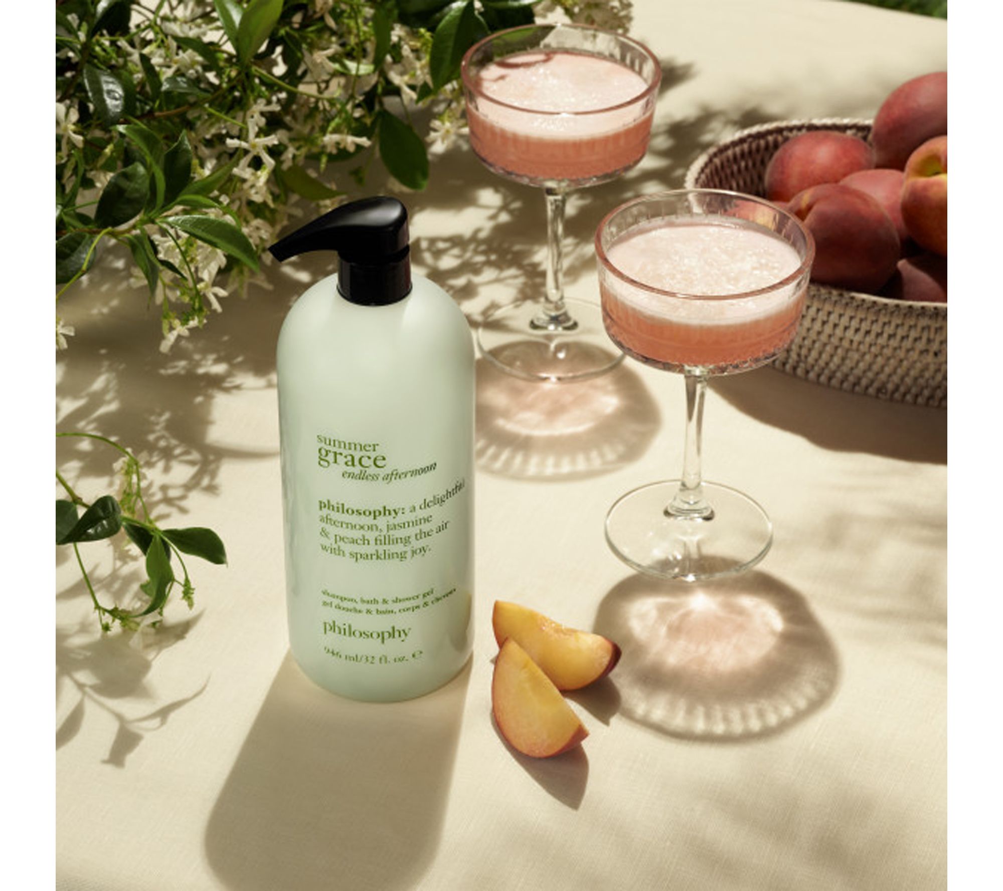 Find a moment of summer joy with our special-edition philosophy summer grace endless afternoon hydrating shower gel. Notes of sparkling peach, blooming jasmine, and sandalwood transport you to a sundrenched garden party. The luxurious formula leaves the skin looking moisturized and hydrated. The floral, fruity summer fragrance captures the joyful energy of a laughter-filled afternoon under the sun with your closest friends.