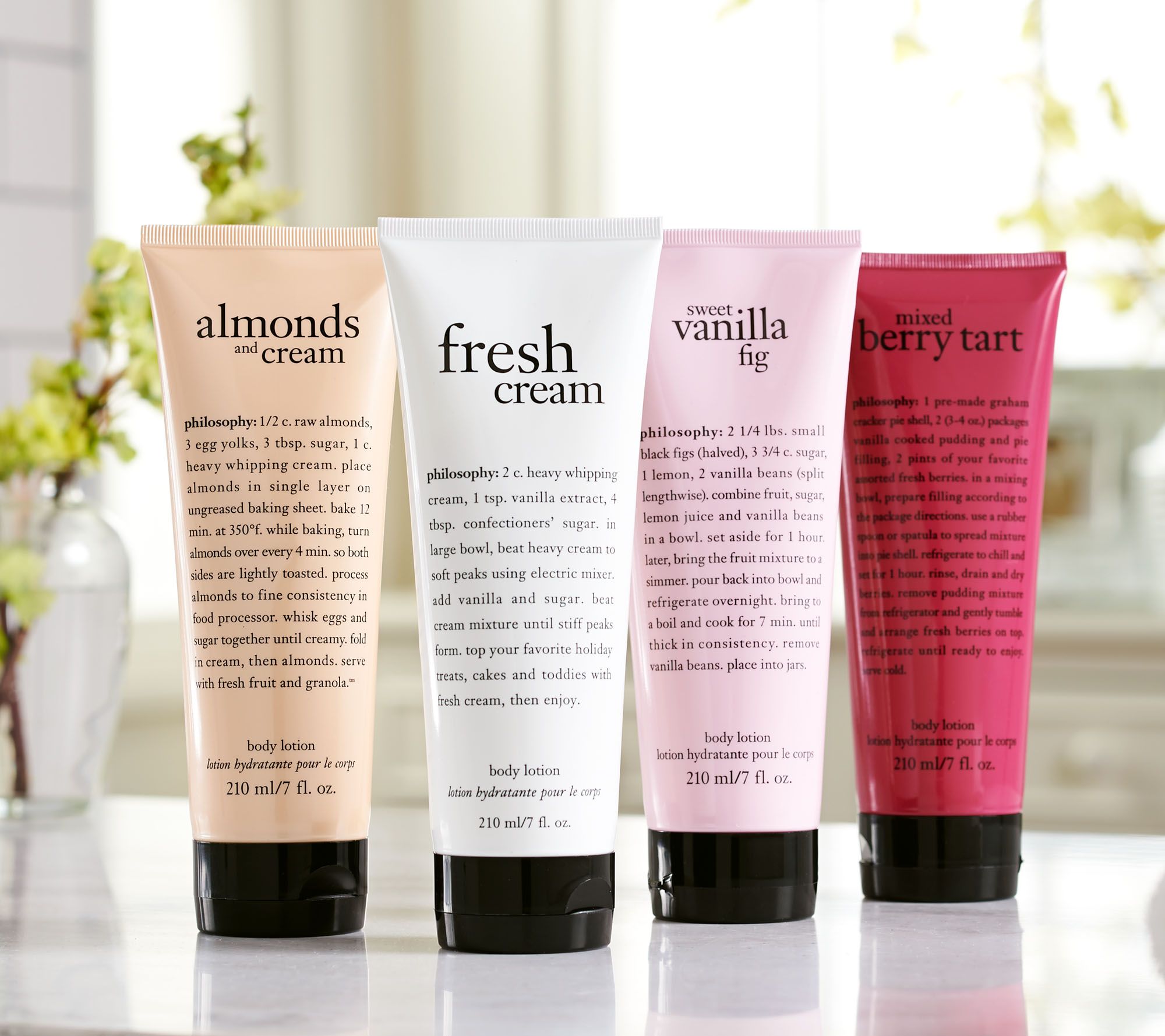 Get away, with the four fresh fragrances in this philosophy sweet escapes body lotion set.