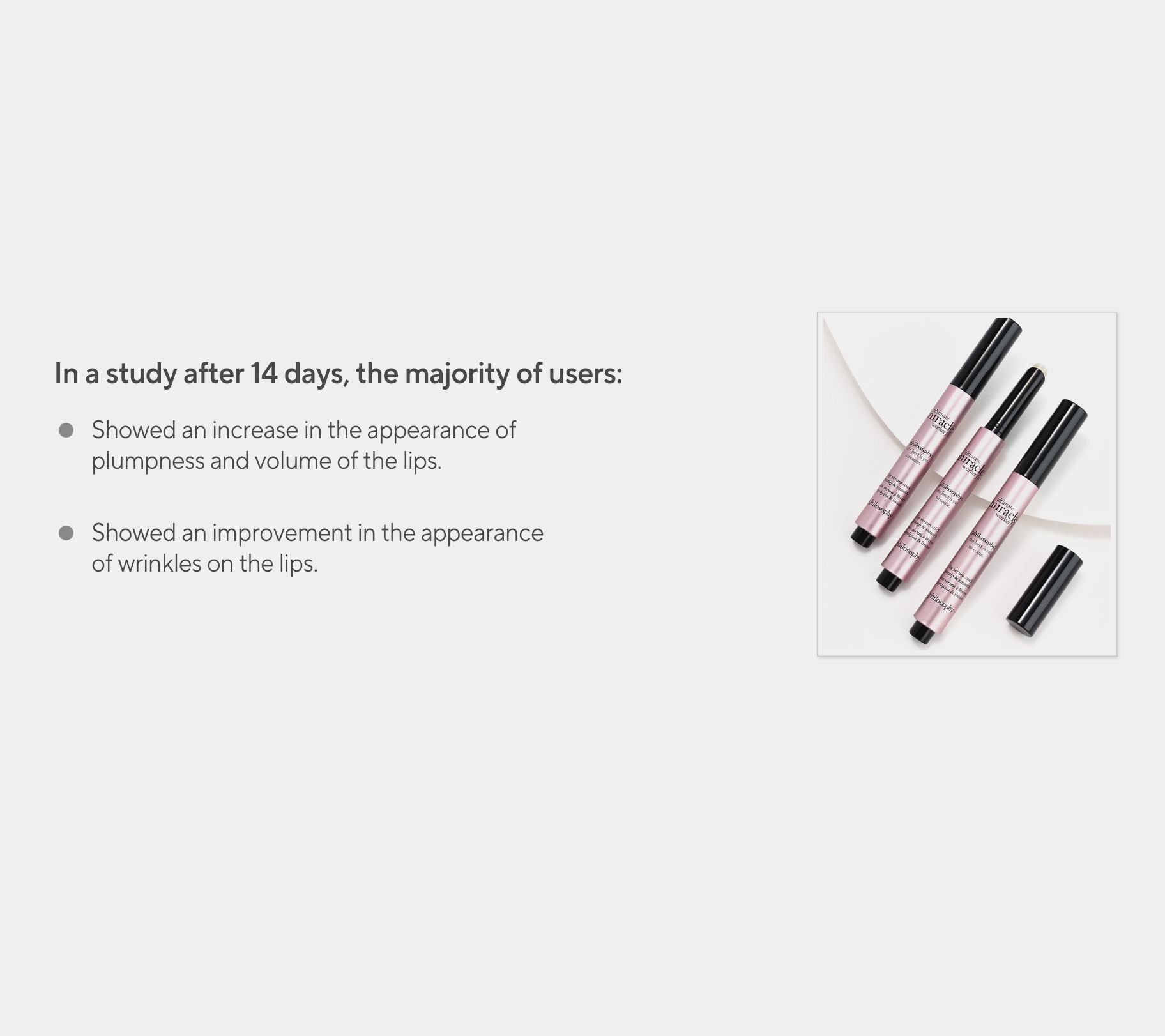 In a study after 14 days: - the majority of users showed an increase in the appearance of plumpness and volume of the lips