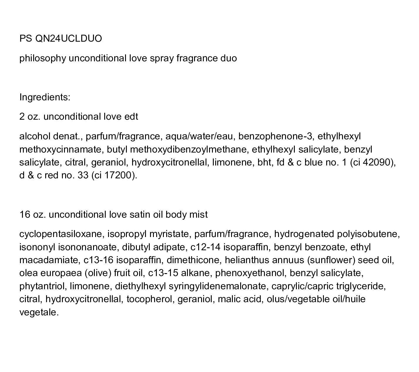 How do I use it: Generously mist satin body oil onto slightly damp skin and massage into skin. Apply fragrance spray to clean, dry skin. Avoid eye contact.