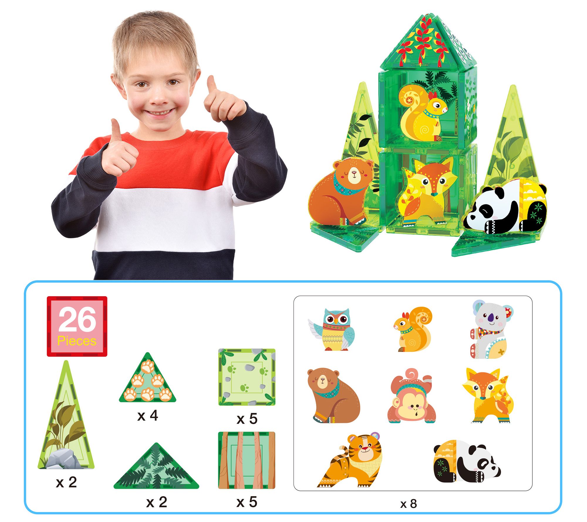 PicassoTiles 26 Piece Forest Animal Magnet TileBlock Set