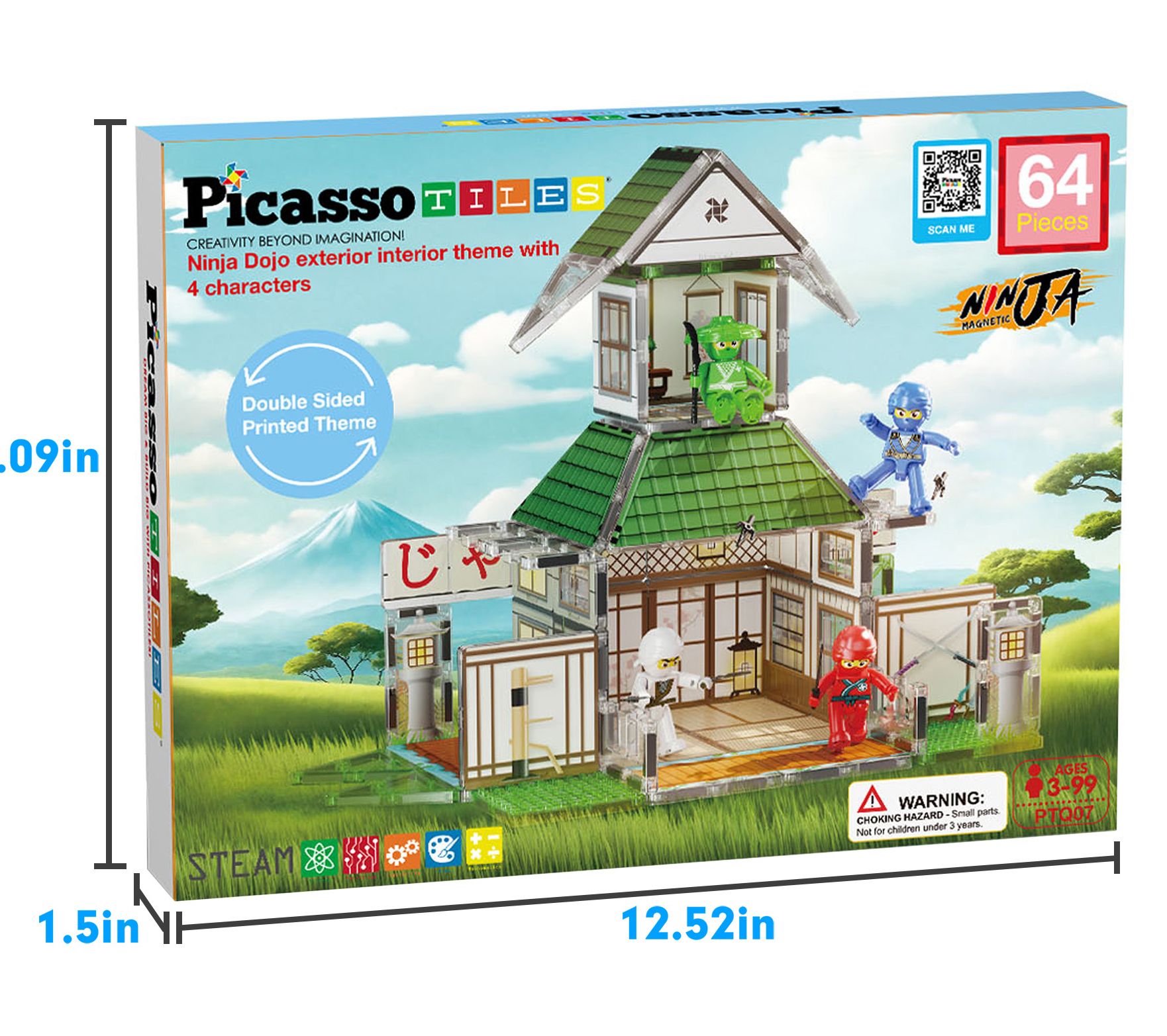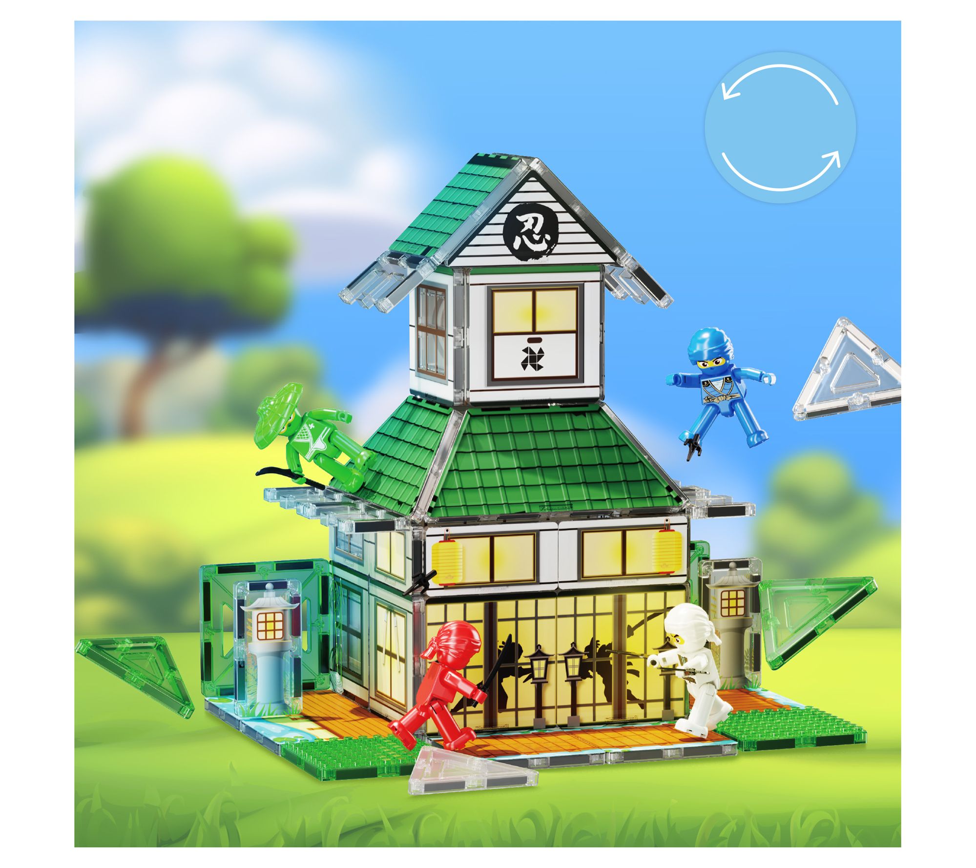 PicassoTiles 64pc Magnetic Tile Ninja Dojo Martial Arts Set