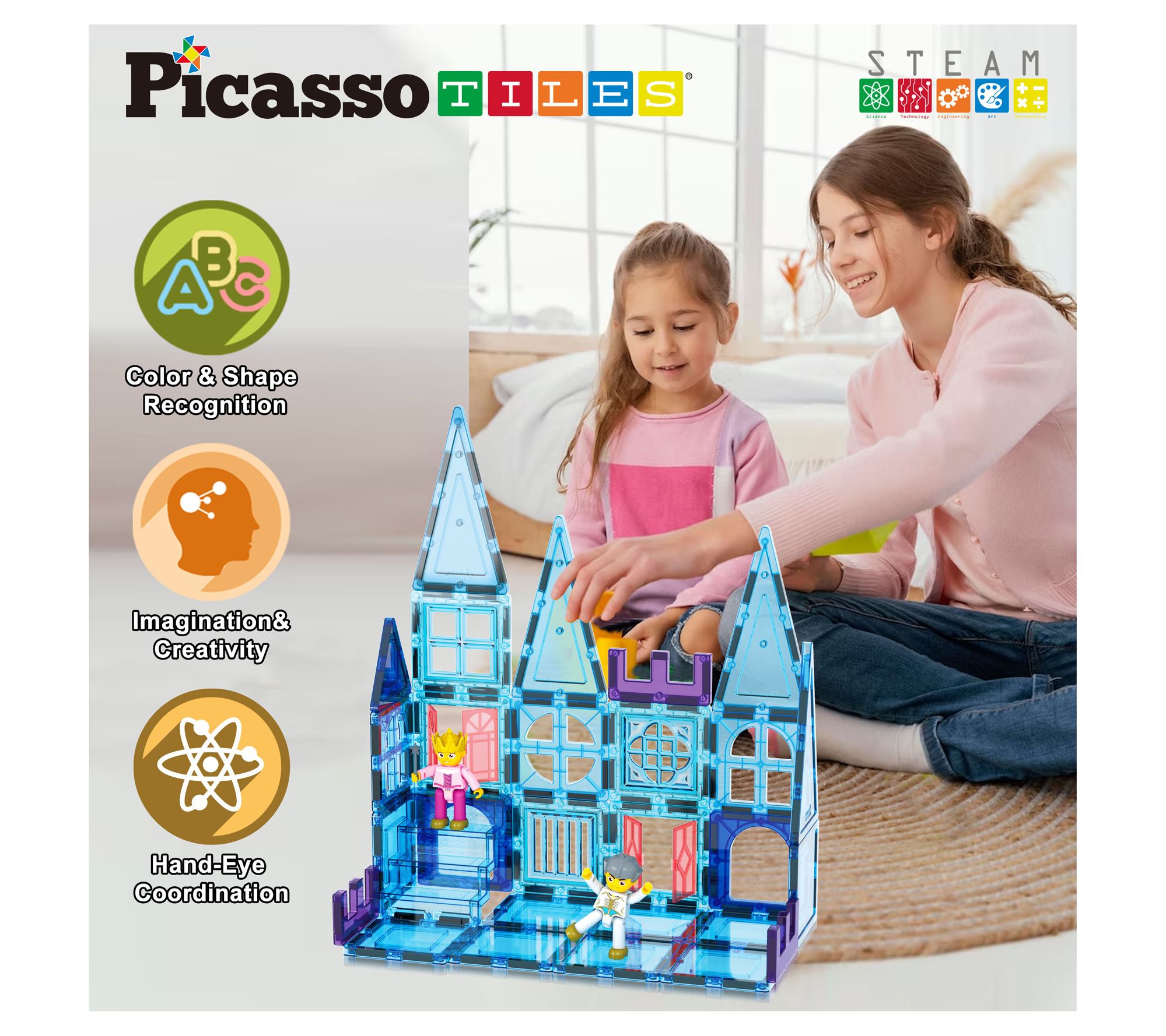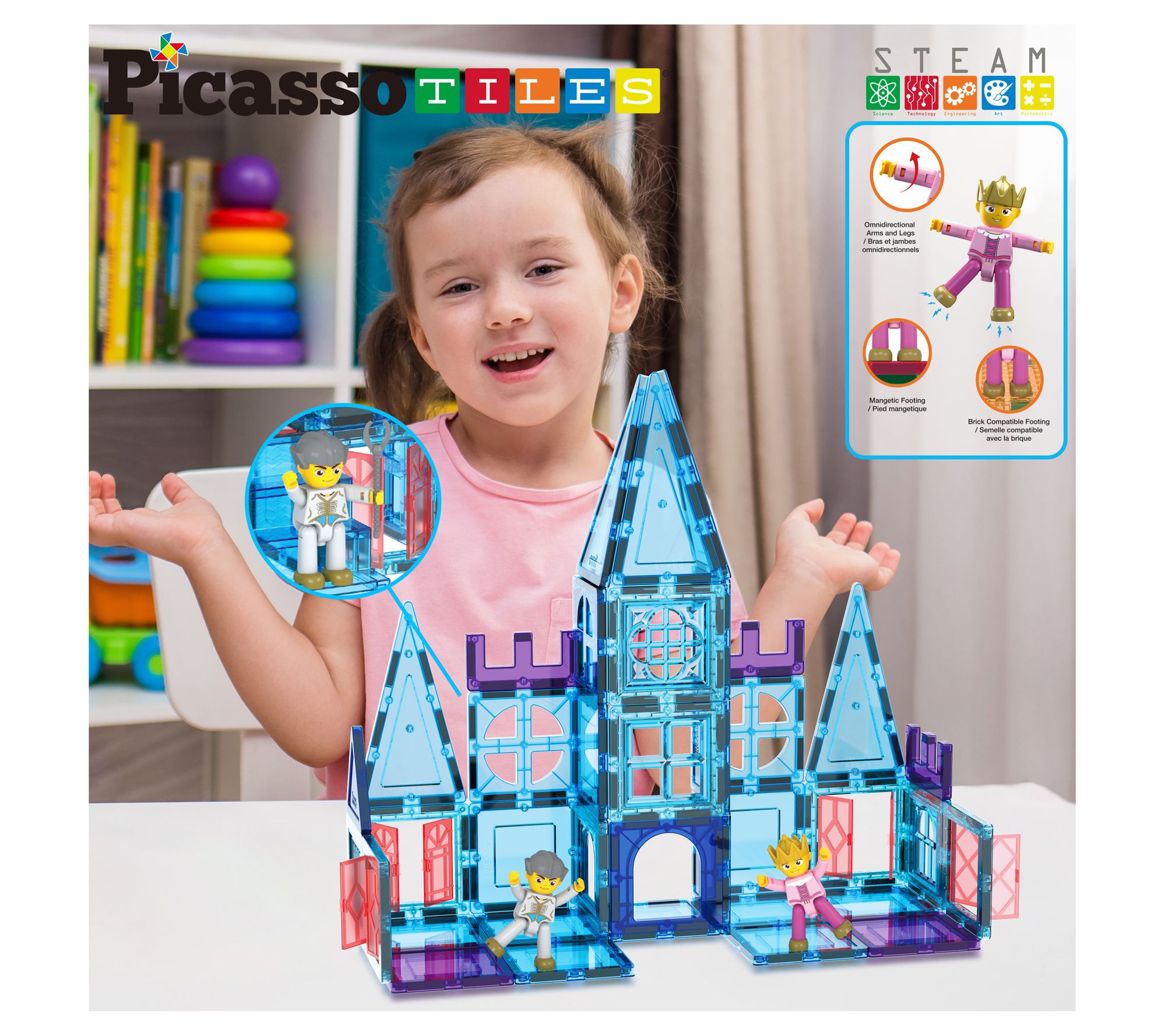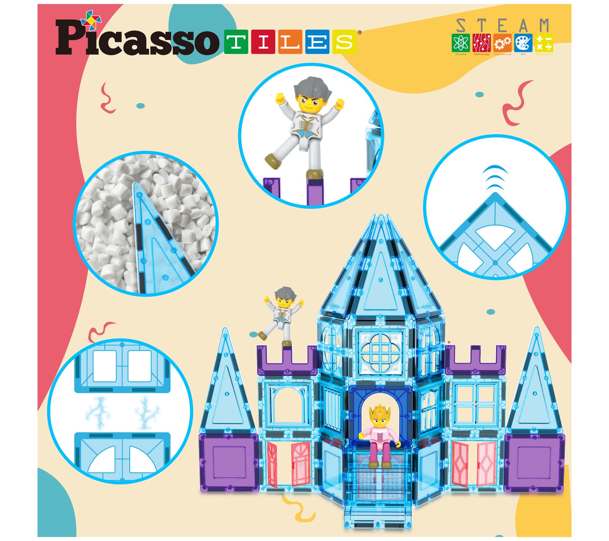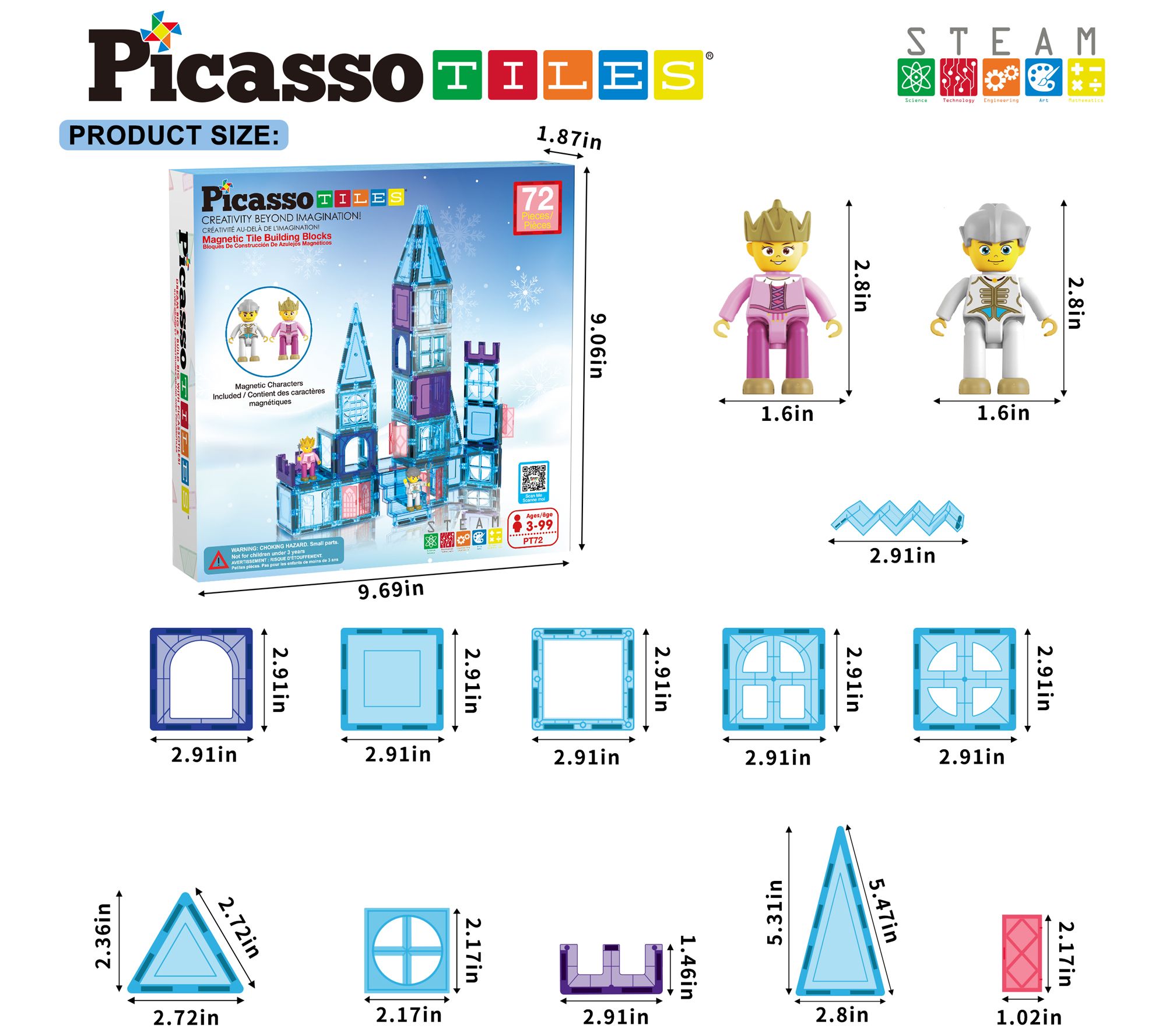 PicassoTiles 72pc Ice Castle Magnet Building Tiles