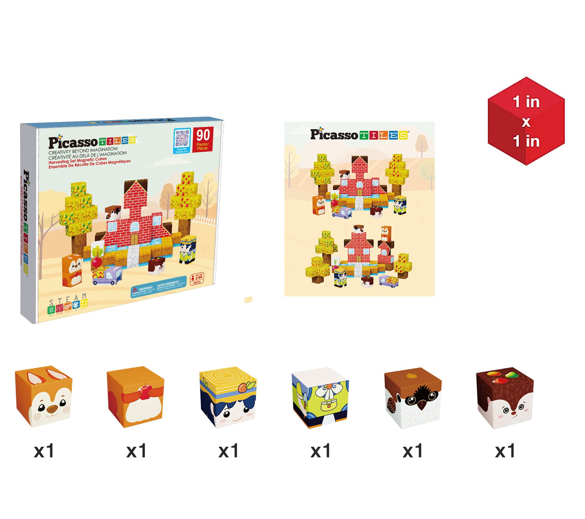 PicassoTiles Farm Harvesting Magnetic Cubes Set90 Piece