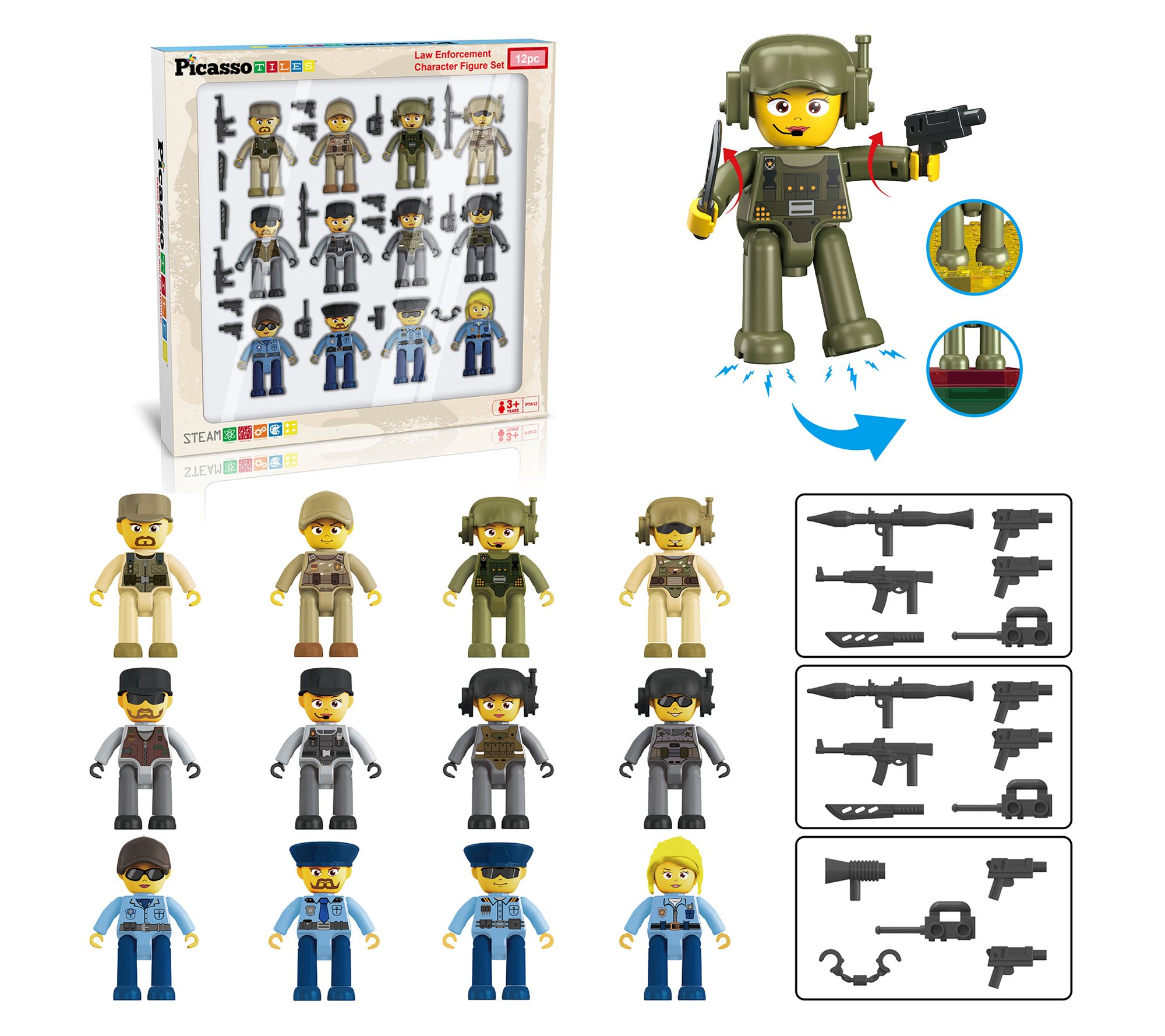 PicassoTiles Law Enforcement & Military Character Figure Set