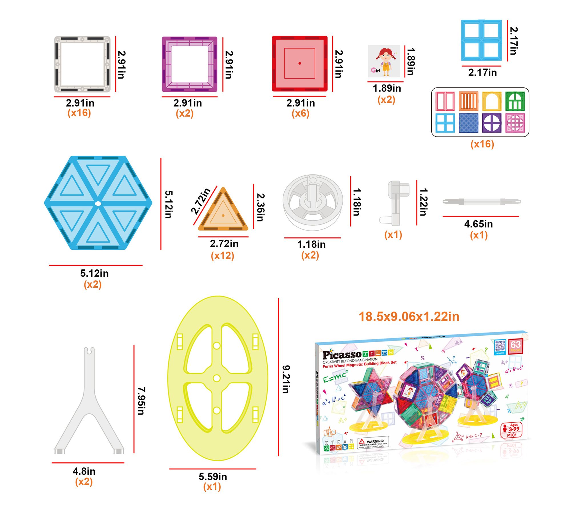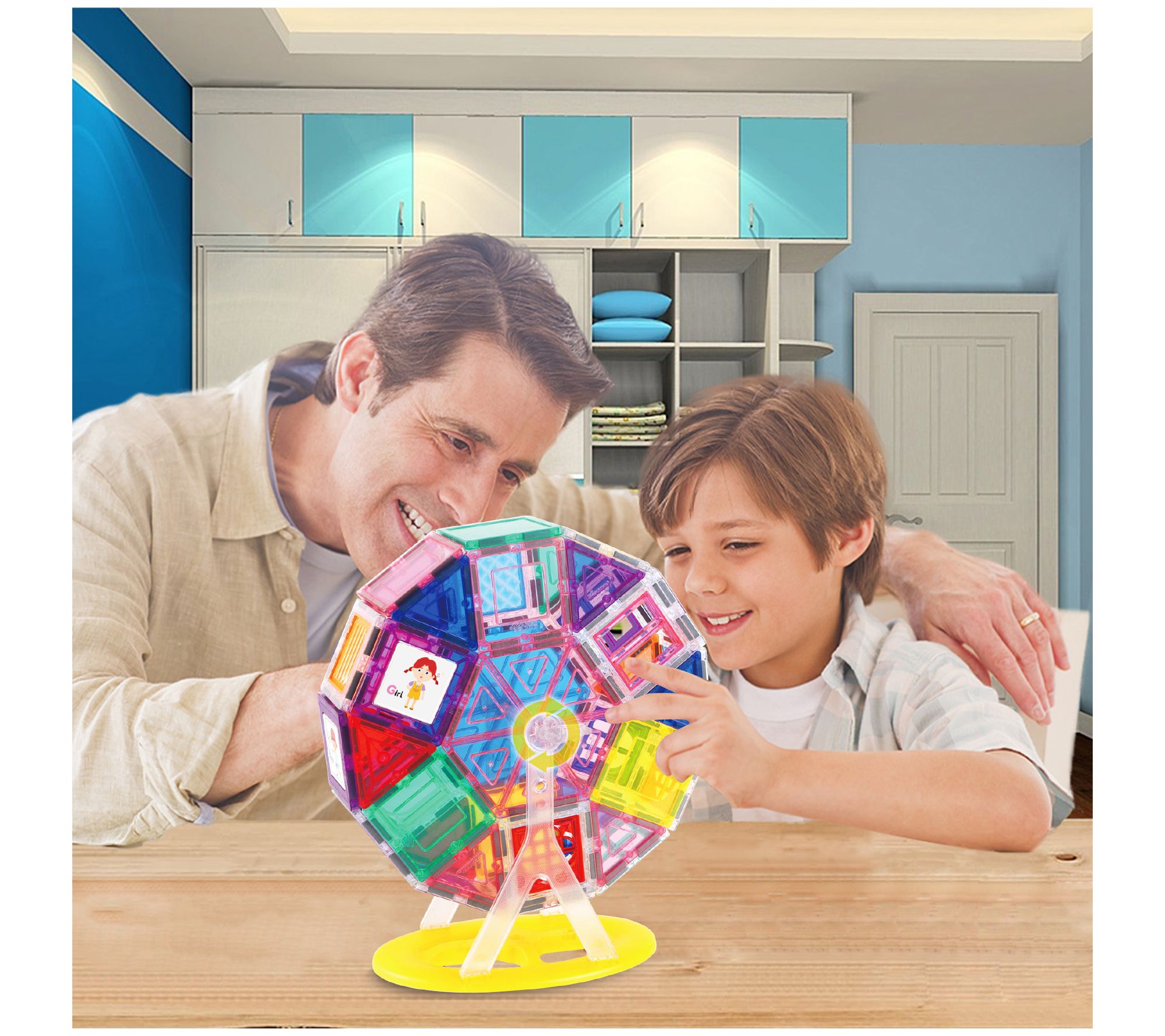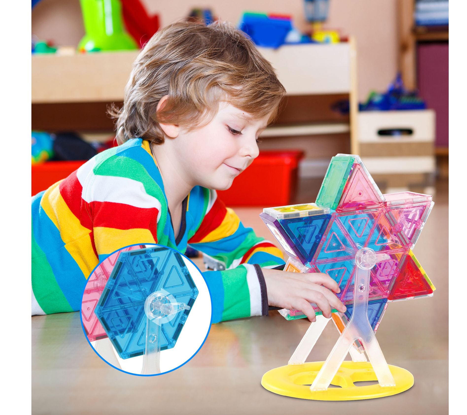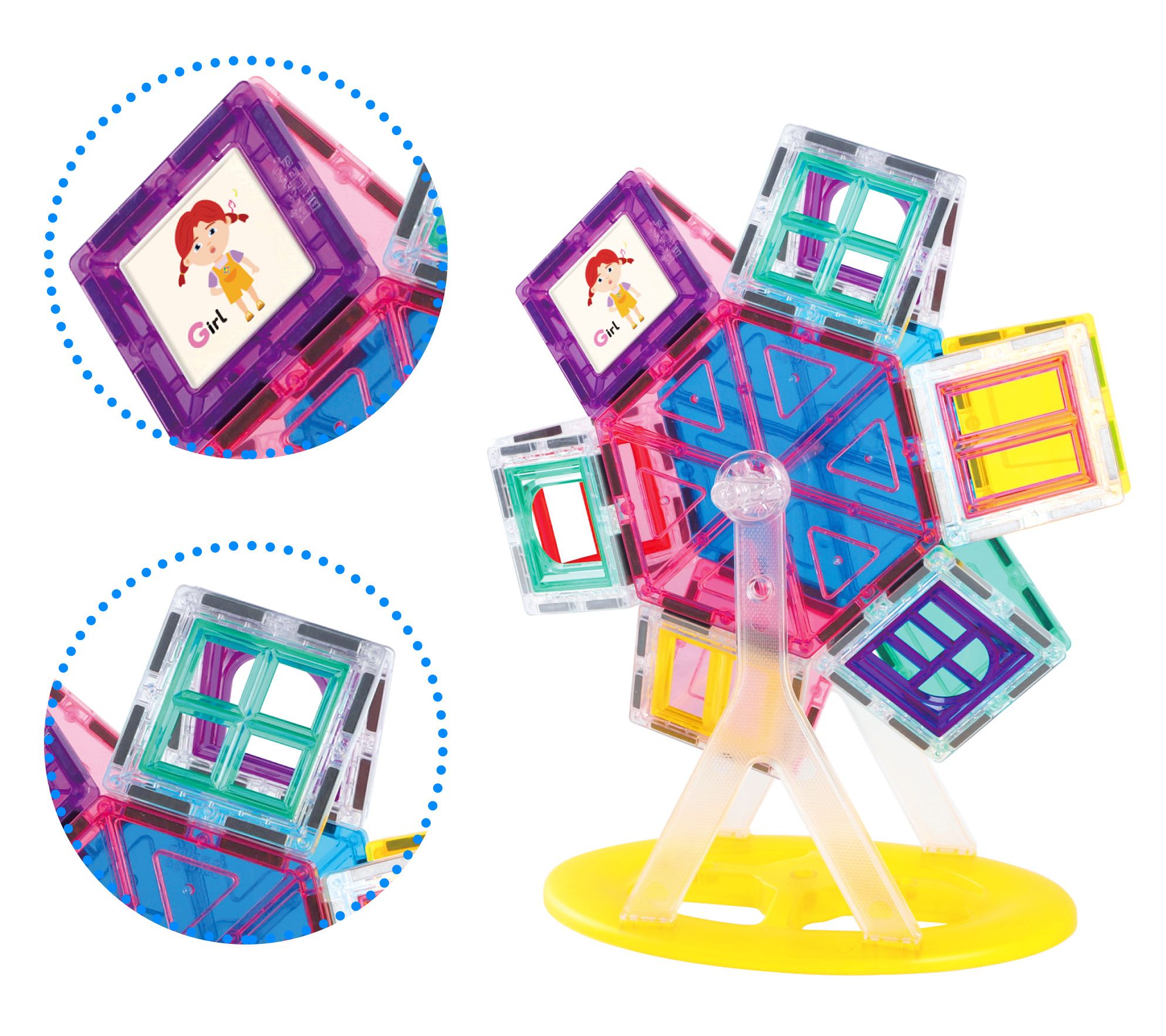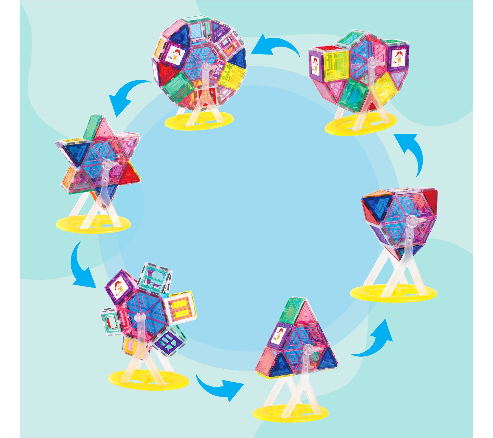 Unleash your child's creativity and engineering skills with the PicassoTiles Ferris Wheel rotating magnet tile playset. Watch their eyes light up as they connect tiles to the exclusive base, creating spinning Ferris wheels that rotate a full 360 degrees. This magnetic building set provides endless opportunities for imaginative play and hands-on learning, offering hours of entertainment and education. From Picasso Tiles.
