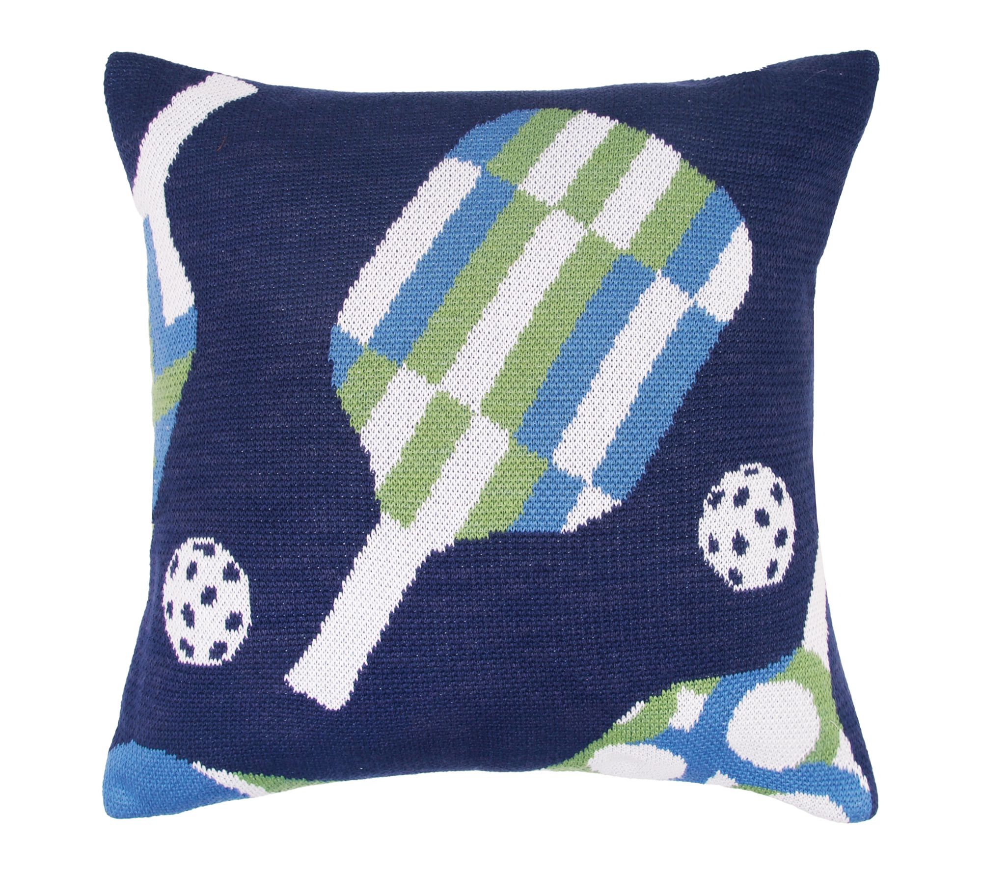 Bring a playful dose of sporty style to your space with this decorative pillow, designed to celebrate the charm of pickleball and ping pong. The soft knit texture and embroidered game details add visual warmth and whimsical elegance whether displayed in a coastal retreat, game room, or favorite lounging nook. It's a cozy conversation starter with personality and dimension that's ideal for gifting or layering with other bedding accents. From the Valerie Parr Hill Collection.