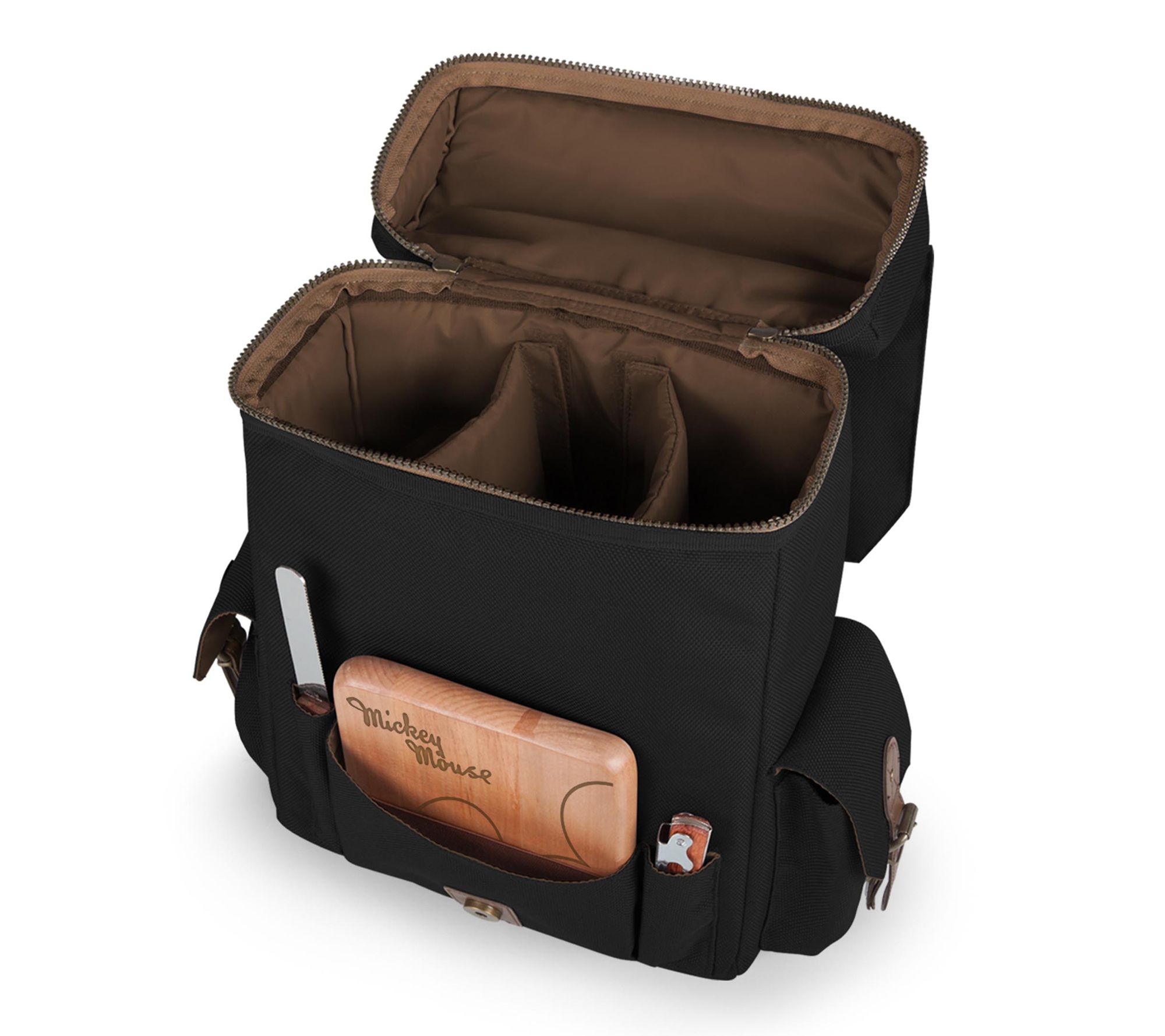Mickey's ready for memorable fun! Just add wine and cheese to this three-bottle wine and cheese tote. A cutting board, knife, and corkscrew are included! From Picnic Time.