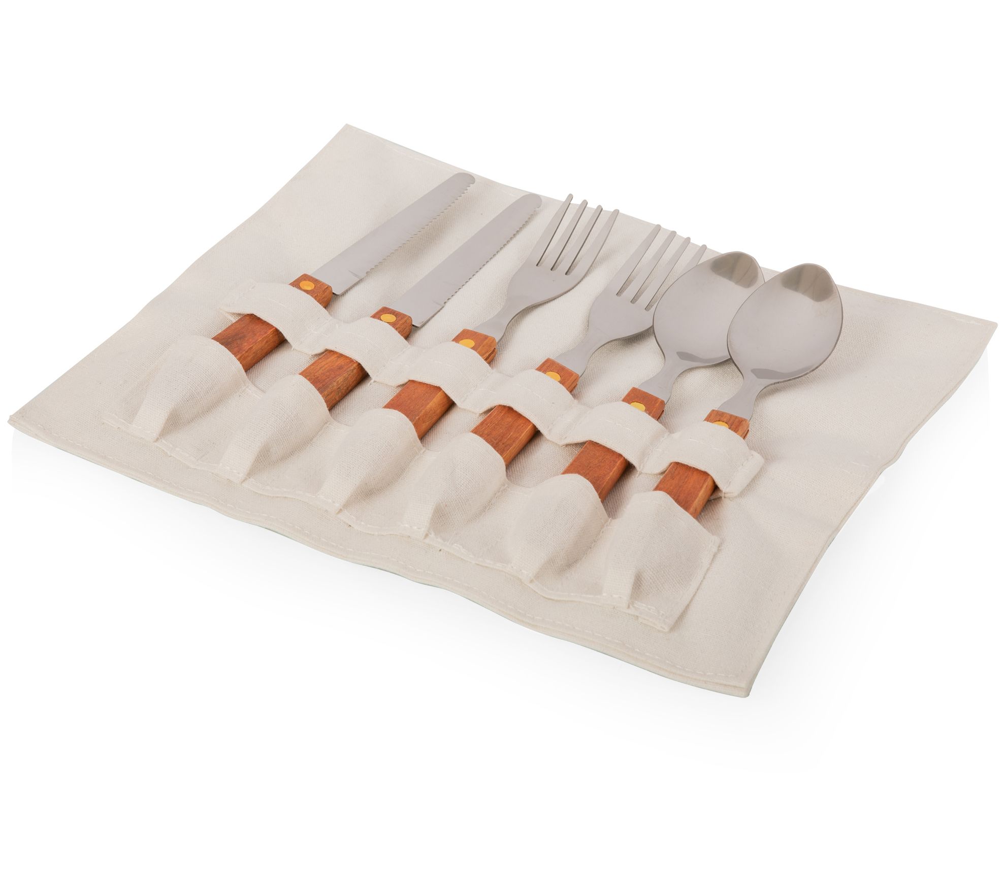 • Includes picnic basket, two plates, canvas plate pouch, two wine glasses, two forks, two spoons, and one roll-up flatware pouch