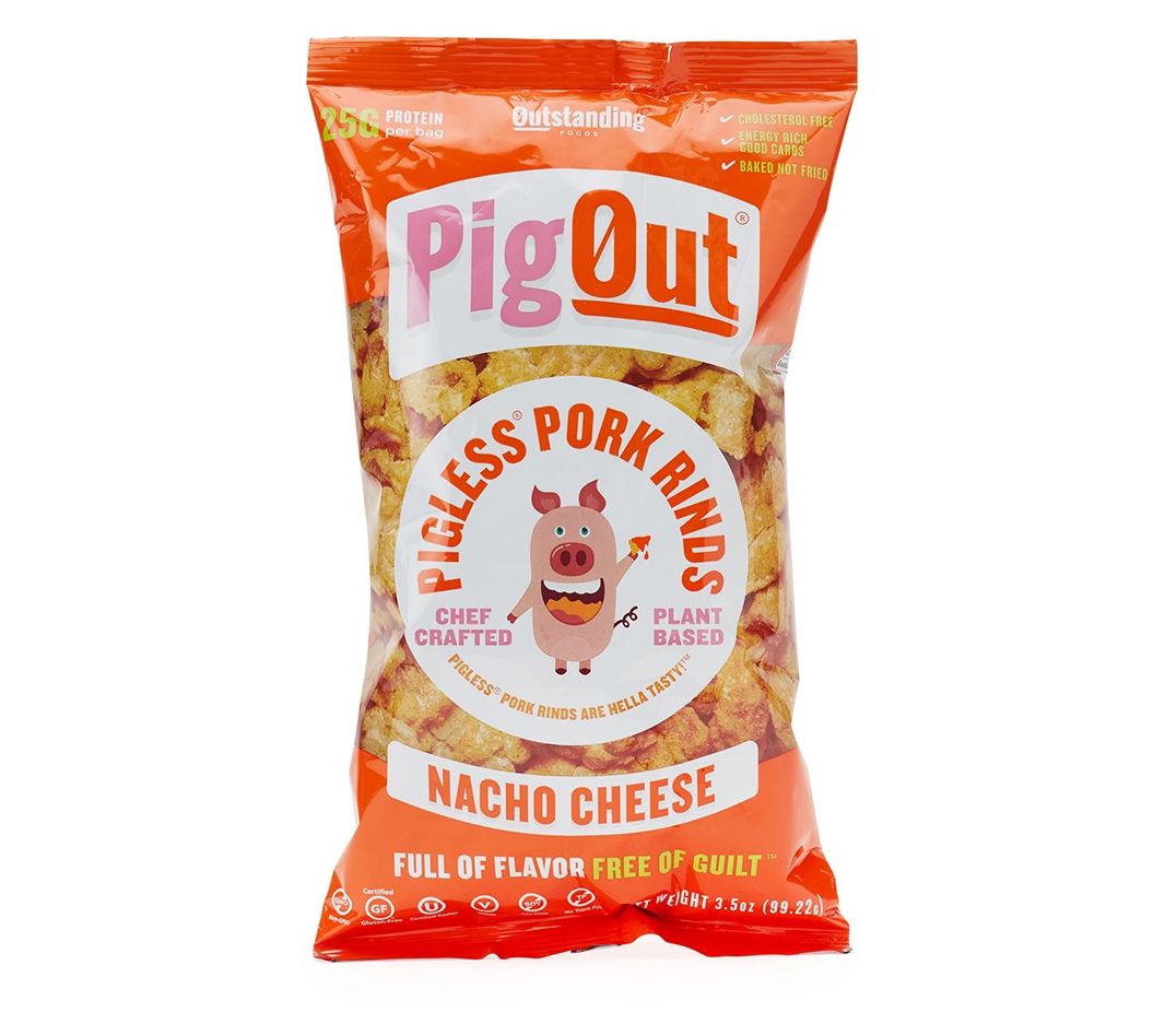• Includes 12 3.5-oz bags of Pig Out Pigless Pork Rinds in Nacho Cheese
