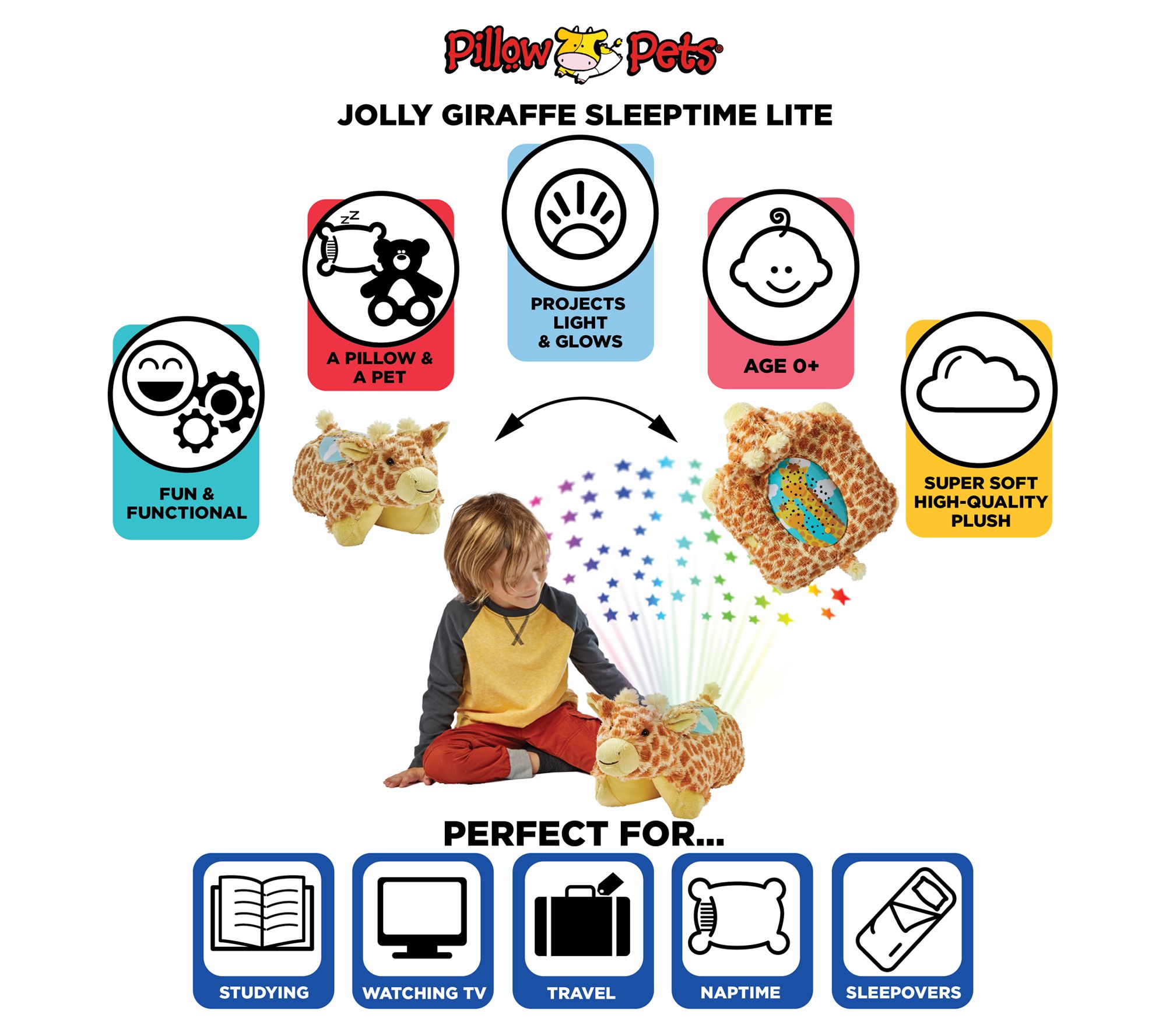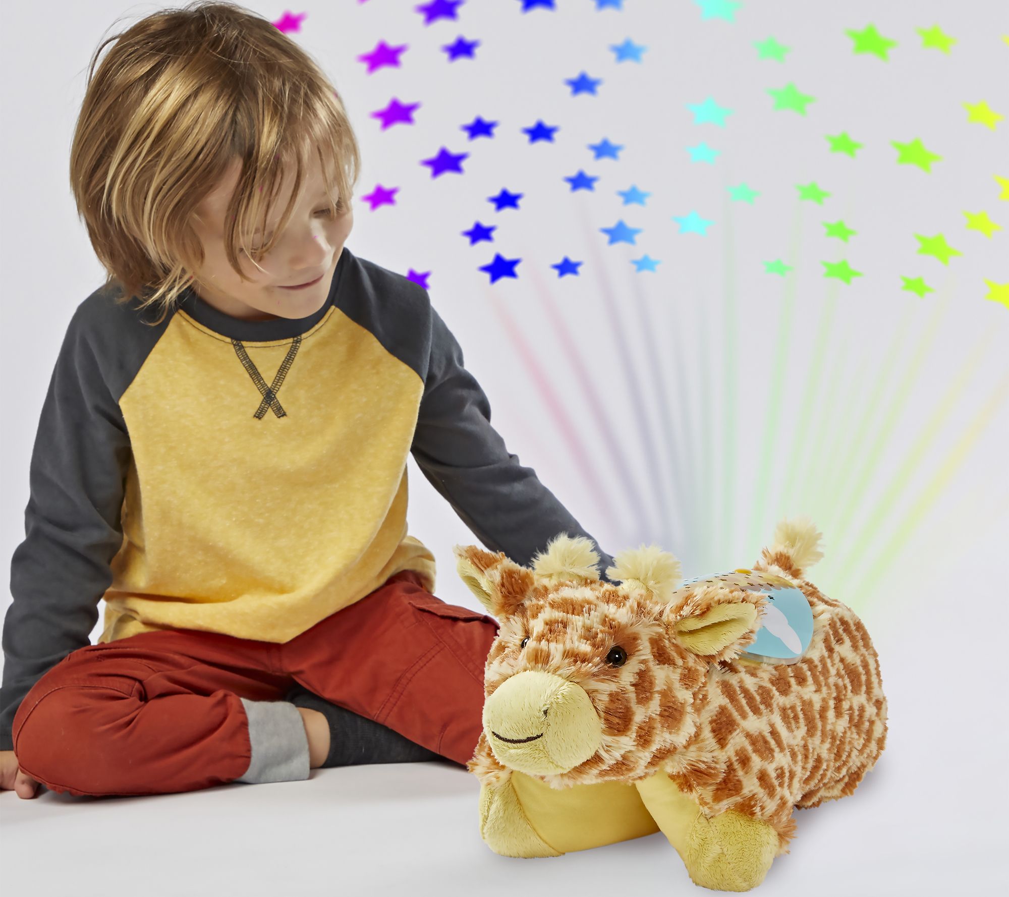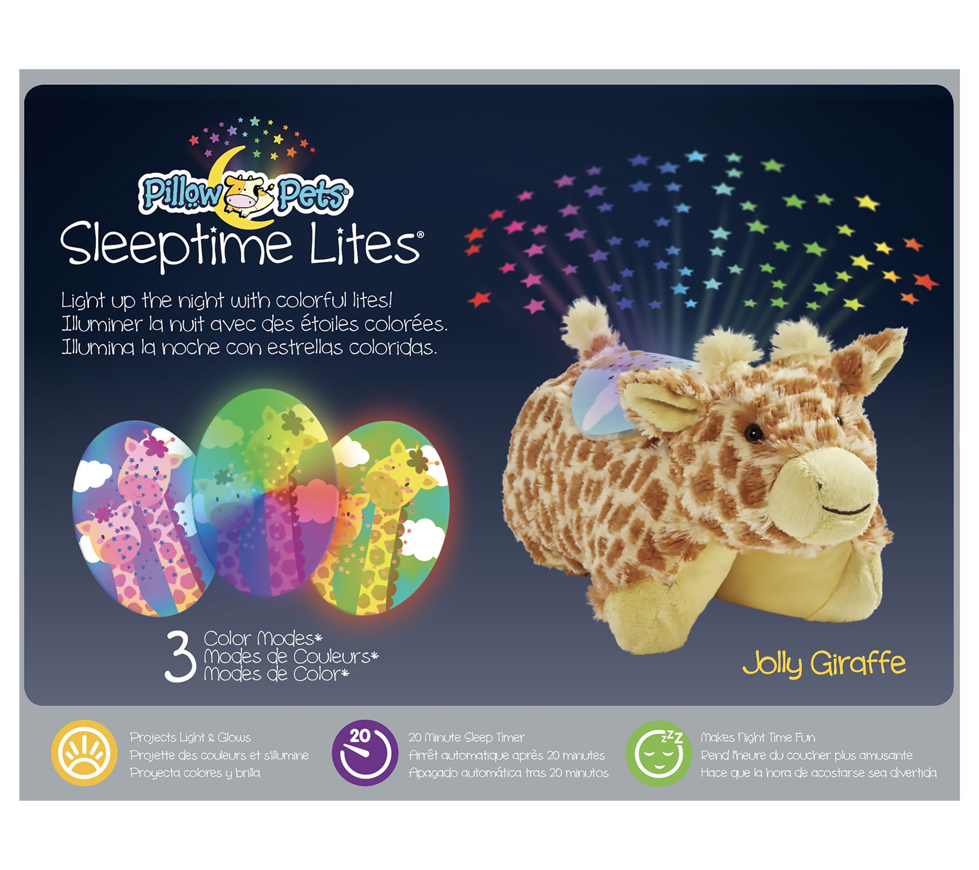 Give your little one the comfort of a stuffed animal and the calming glow of a colorful nightlight with this Sleeptime Lites jolly giraffe plush. From Pillow Pets.
