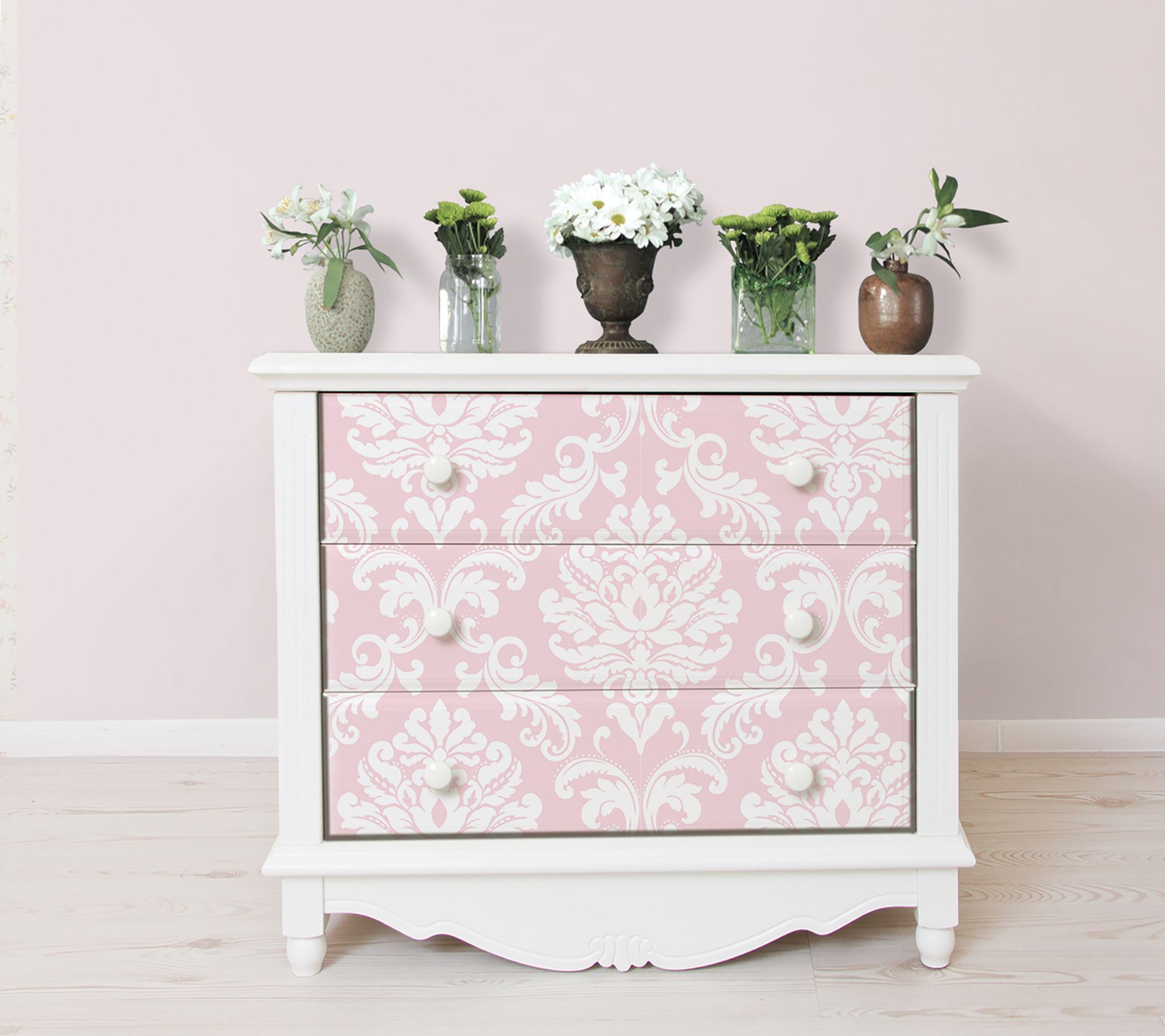 This pink damask baby wallpaper is a posh look for a nursery that will transition beautifully as your child grows. The lovely print and fresh, happy palette add a glamorous and girly look to the room. This design is printed on a premium peel & stick material, making it a temporary wallpaper that is easy to install and easy to remove without damaging walls. Peel and stick to apply, pull up to remove NuWallpaper is safe for walls and leaves no sticky residue behind Easily repositionable while installing NuWallpaper sticks to any smooth, flat surfaces- perfect for DIY projects Ideal for rental or home decorating Comes on a 20.5-in x 18-ft roll and covers about 30.75 sq. ft. Perfect for a nursery Design repeat of 20.5-in;Peel and stick wallpaper