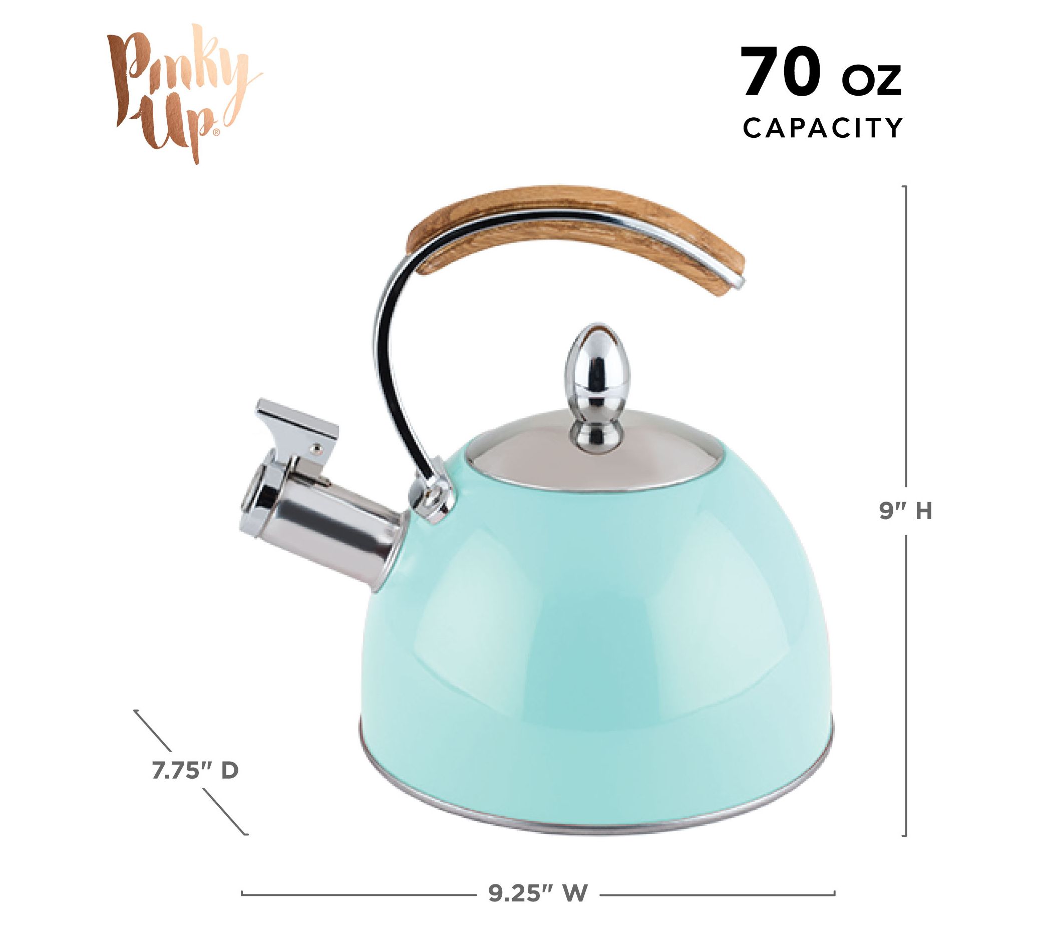 Get set for tea parties, tasty coffee, and more with the help of this light blue kettle. From Pinky Up.