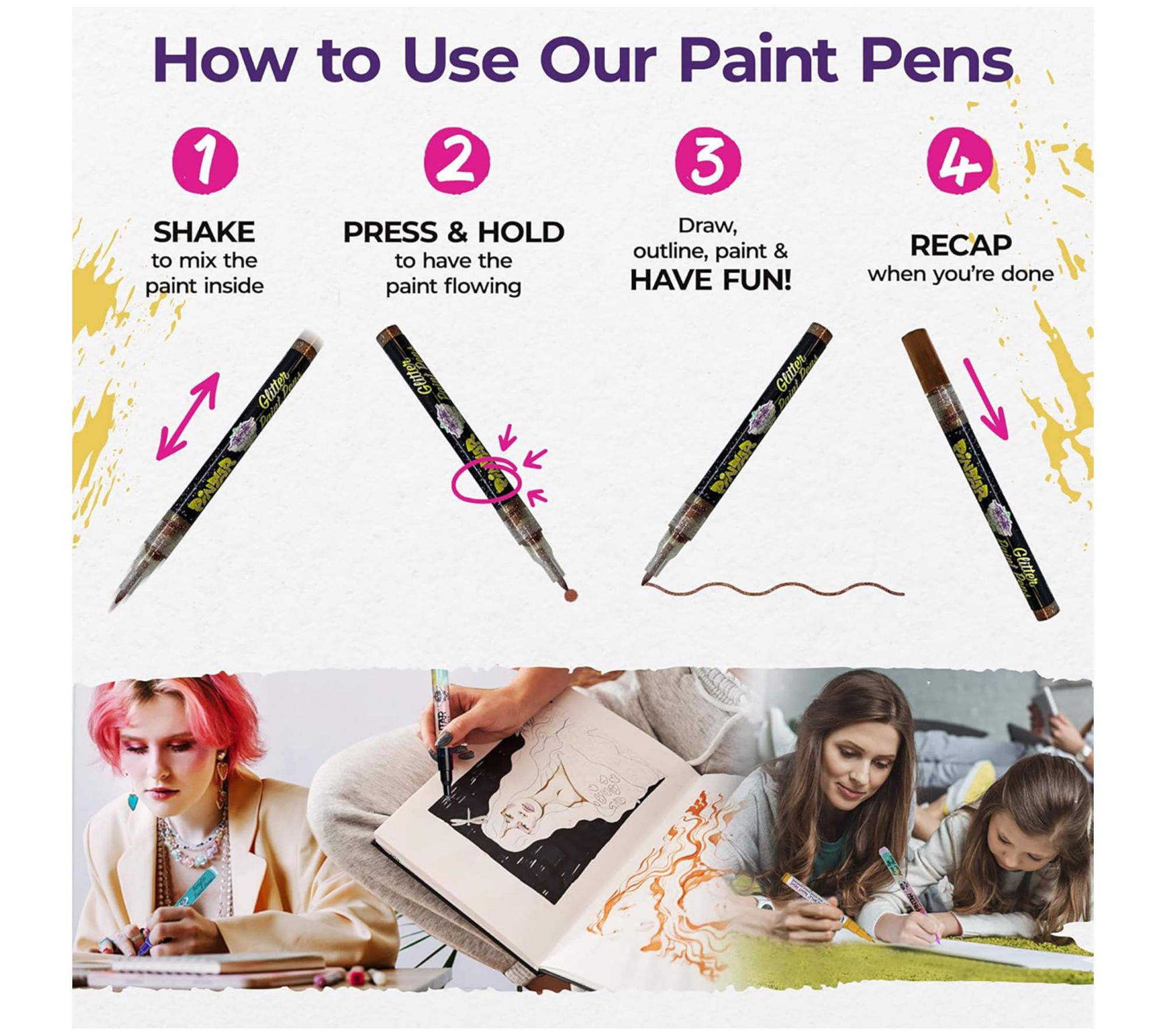 Pintar Glitter Paint Markers - Extra Fine - 14pk