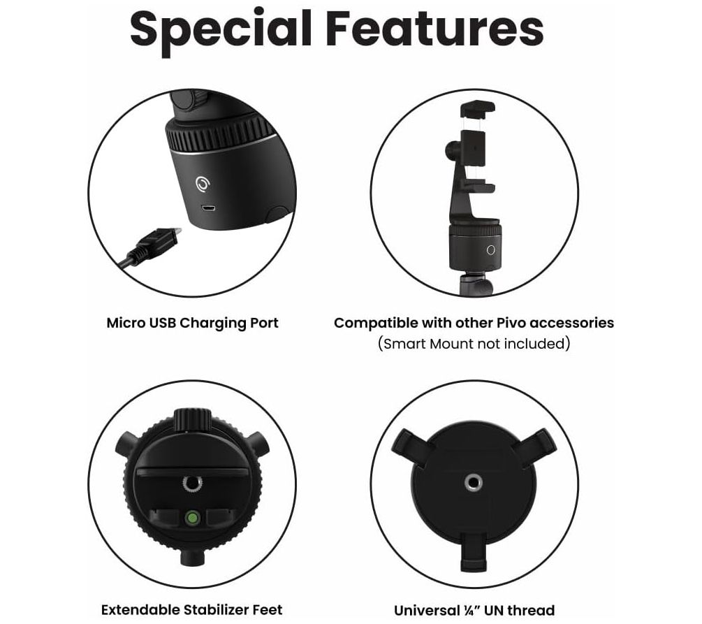 • Includes Pivo Pod, travel case, remote control, smart mount