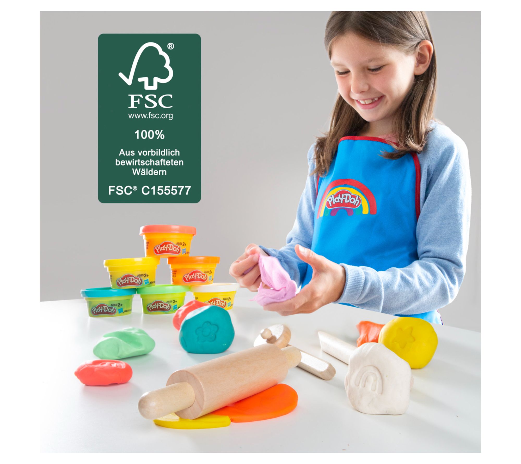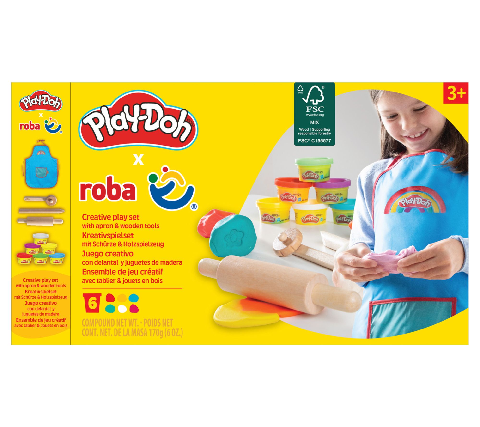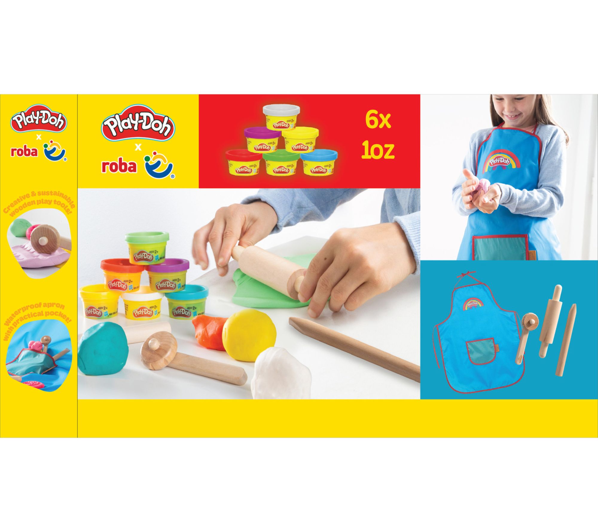 • Includes apron, three wooden tools, and six containers of Play-Doh