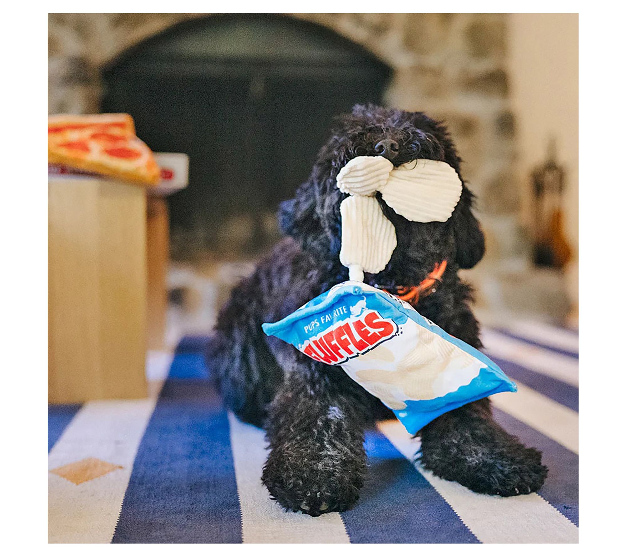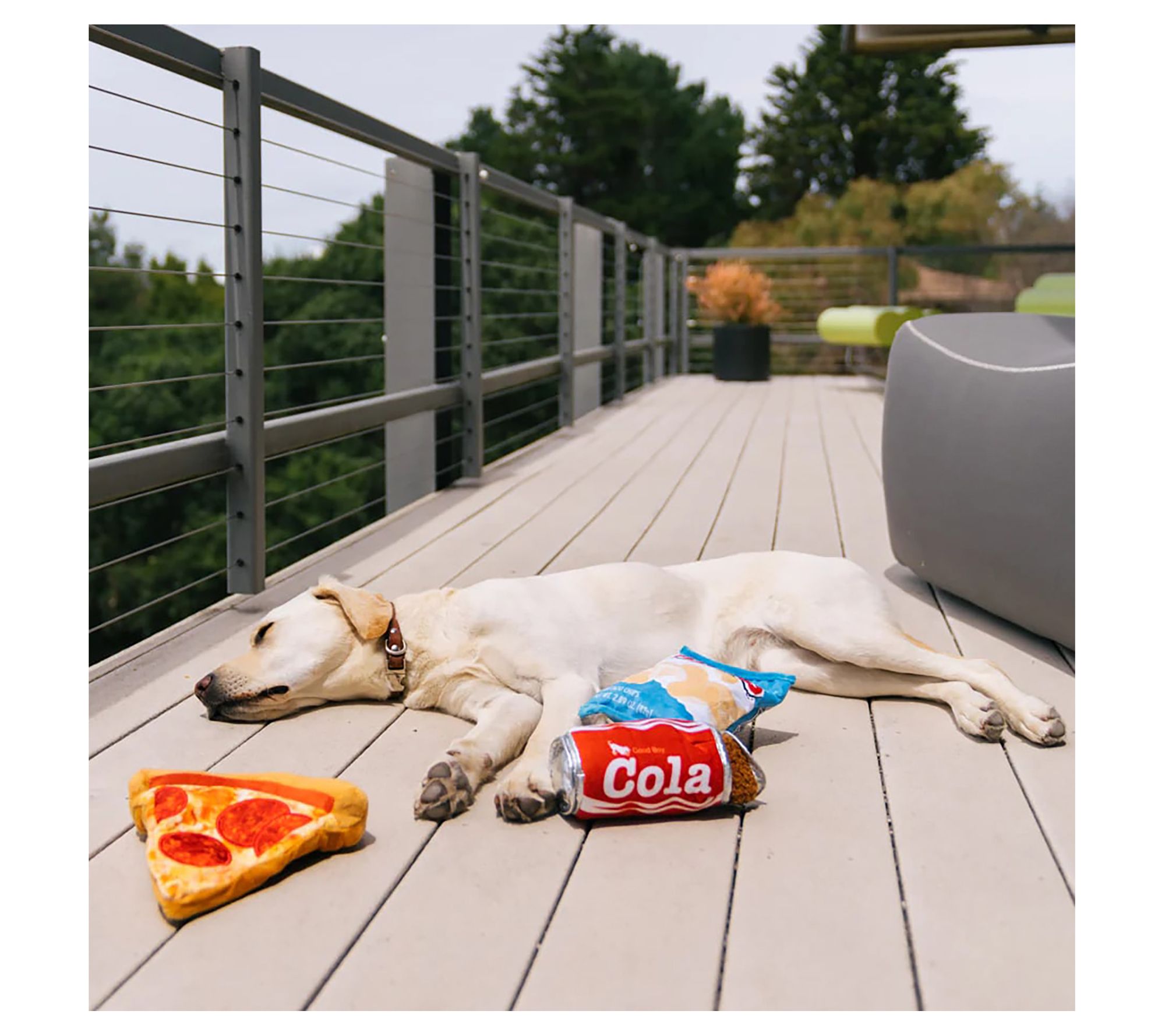 Transform playtime into an adventure with this Snack Attack Collection. This five-piece set includes an assortment of snack-shaped plush dog toys -- including chips, pizza, soda, ice cream cone, and a lollipop. From P.L.A.Y.
