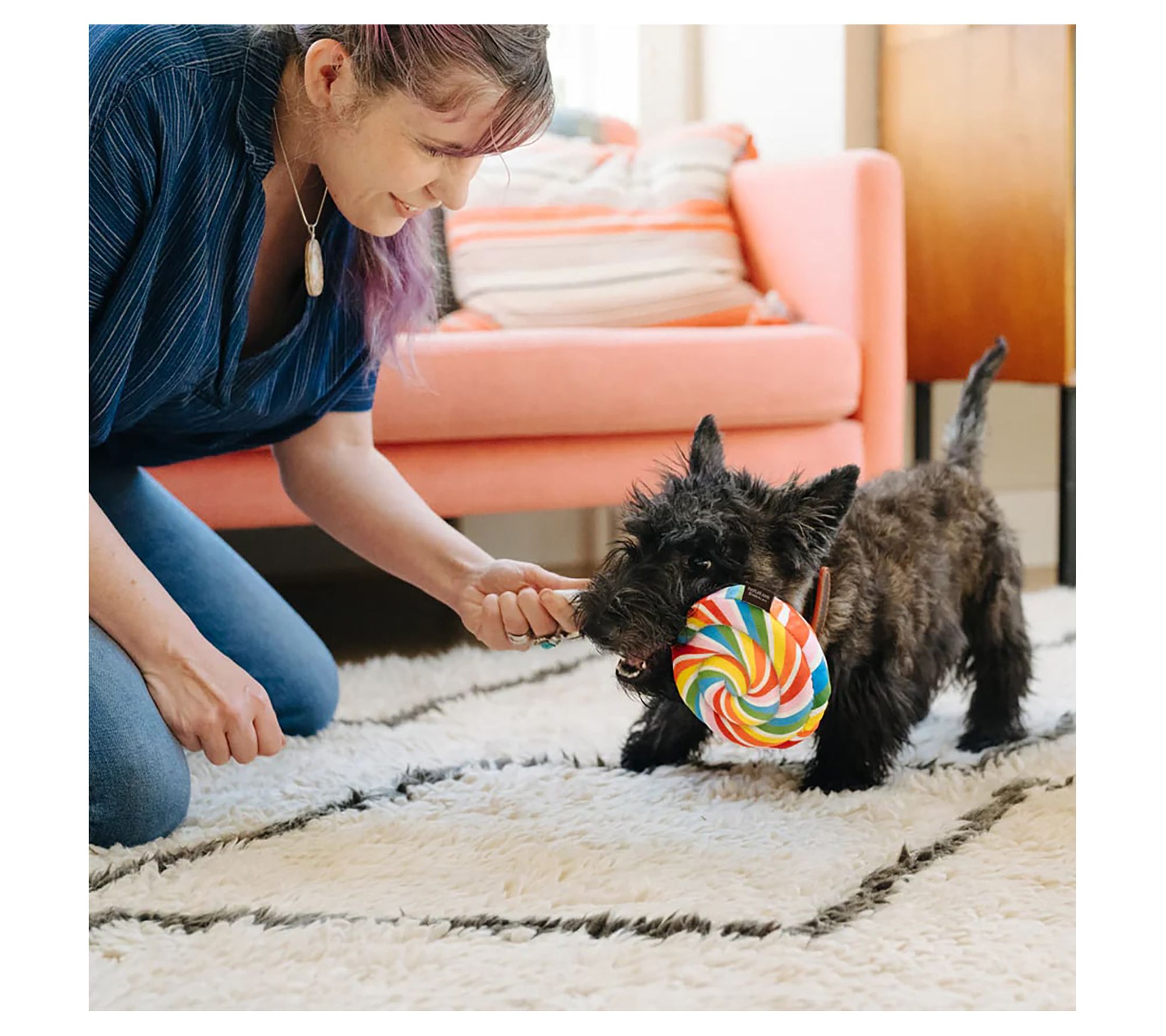 • Includes five plush dog toys