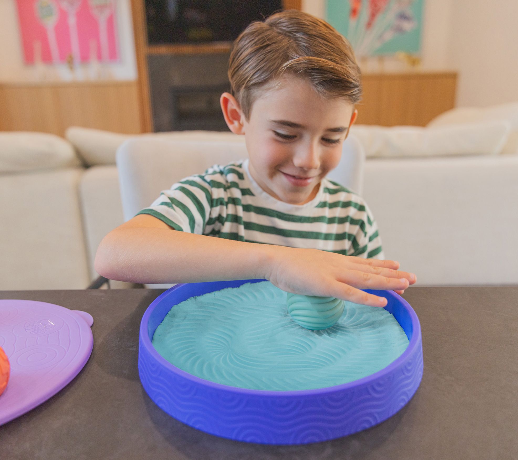 • Includes sand tray with lid, 1-lb of calming blue sand, two patterned spheres, one smoothing sphere, and guide with mindfulness activities