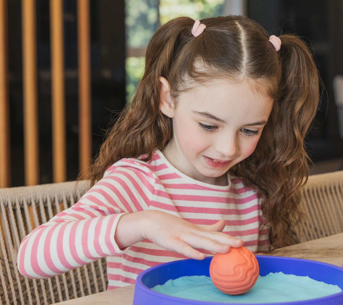Experience a sense of calm and relaxation with the Playfoam Sand Sensory Spheres, designed to soothe the senses. Engage in mindful play by rolling the textured spheres through the blue sand, creating intricate patterns, or gently smoothing it over, offering a peaceful, repetitive activity. Accompanied by mindfulness activity ideas, this set encourages relaxation and emotional well-being. From Educational Insights.
