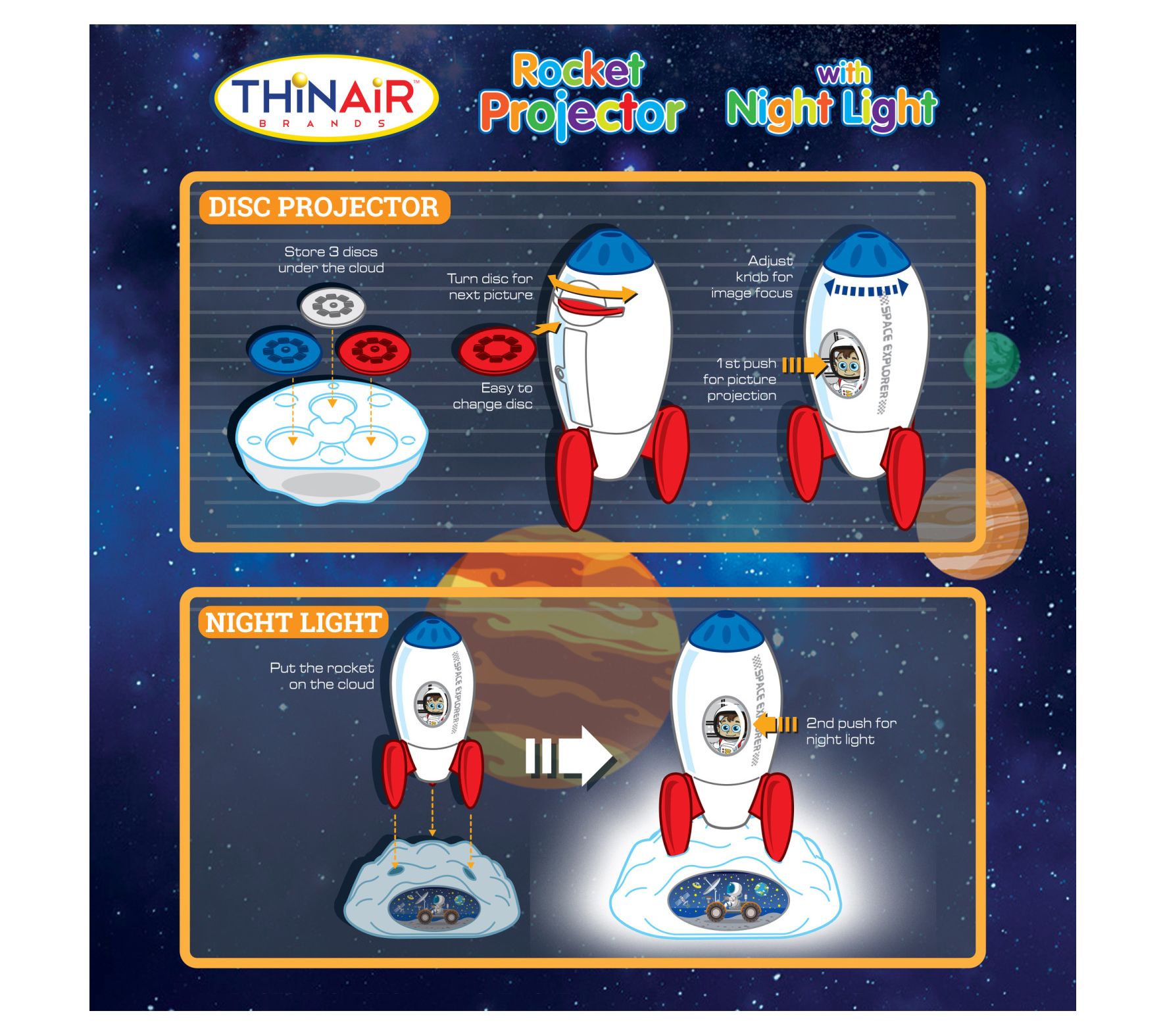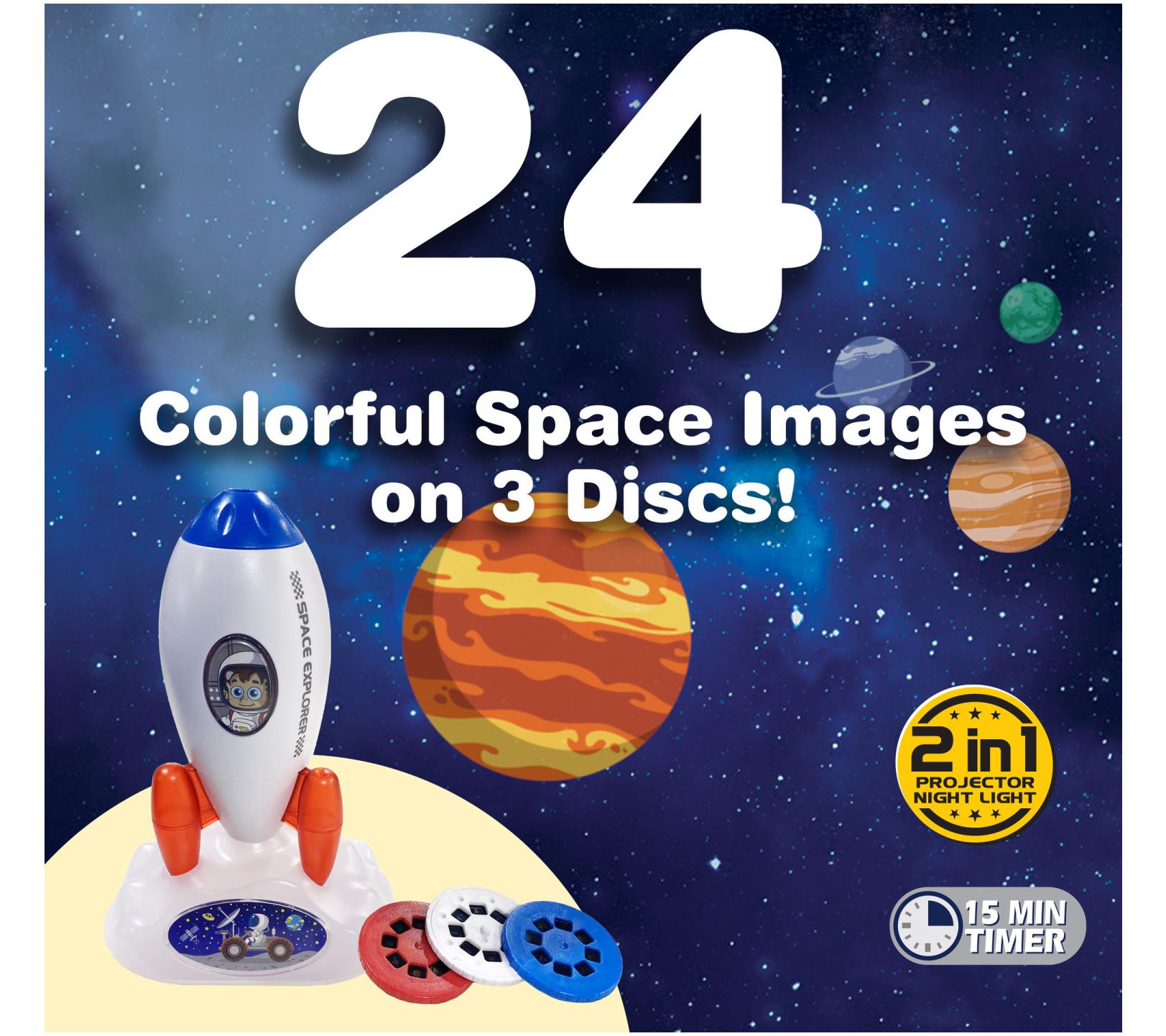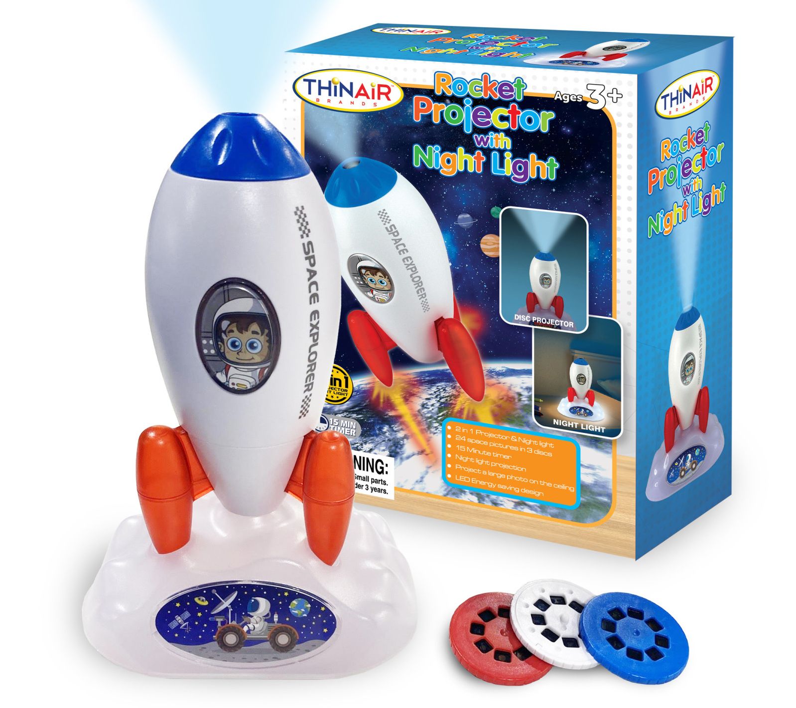 • Includes one rocket projector and three lighting discs