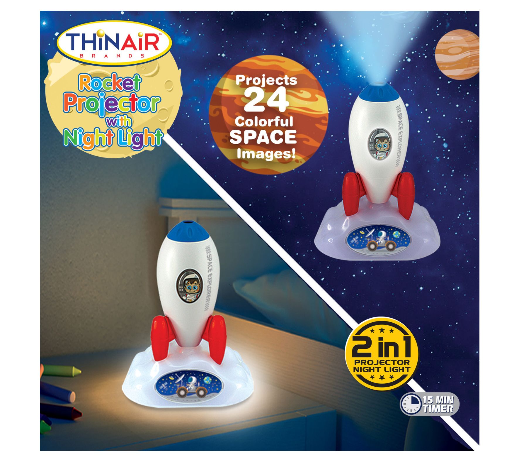 Playful Minds Rocket Projector Night Light, 24Space Images