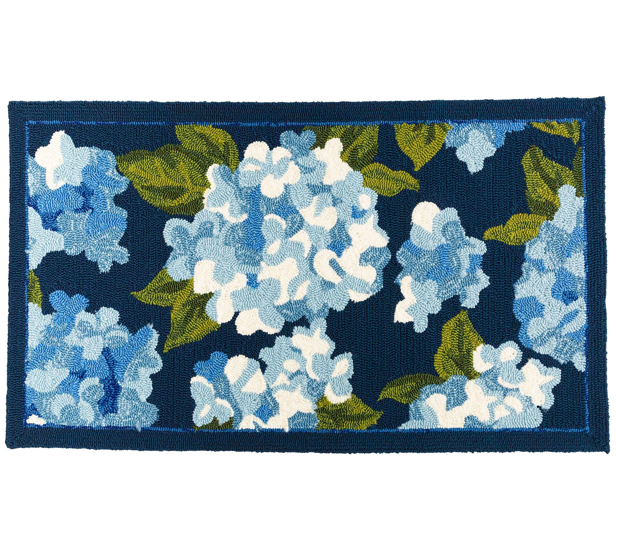 Plow & Hearth 24"x42" Blue Hydrangea Indoor/Out door Rug