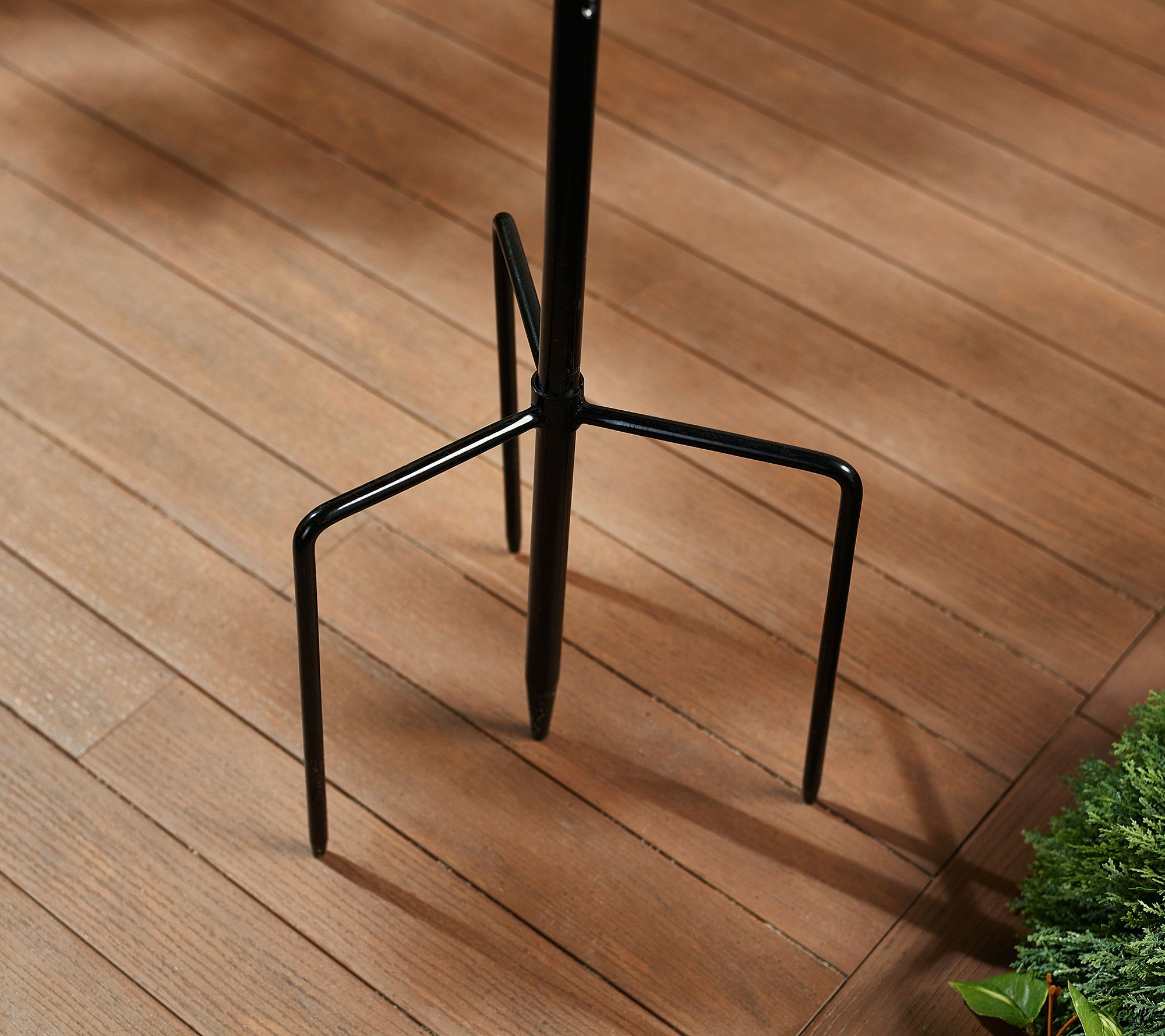 • Stakes into ground