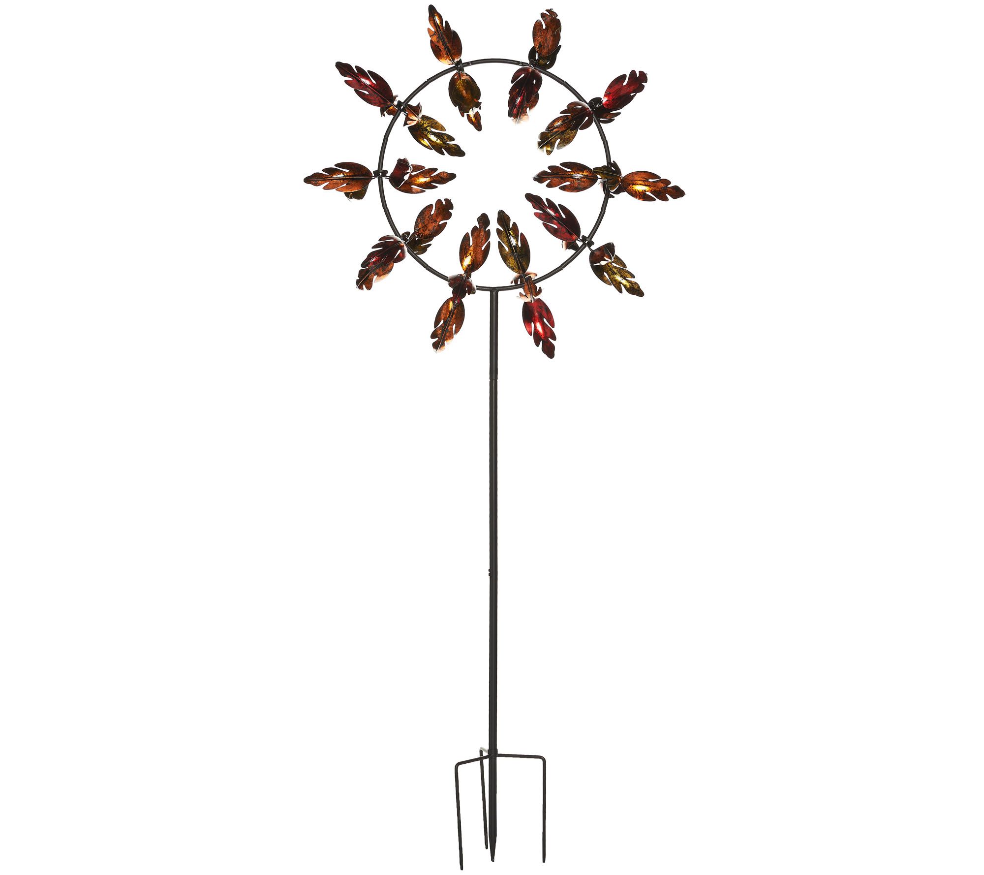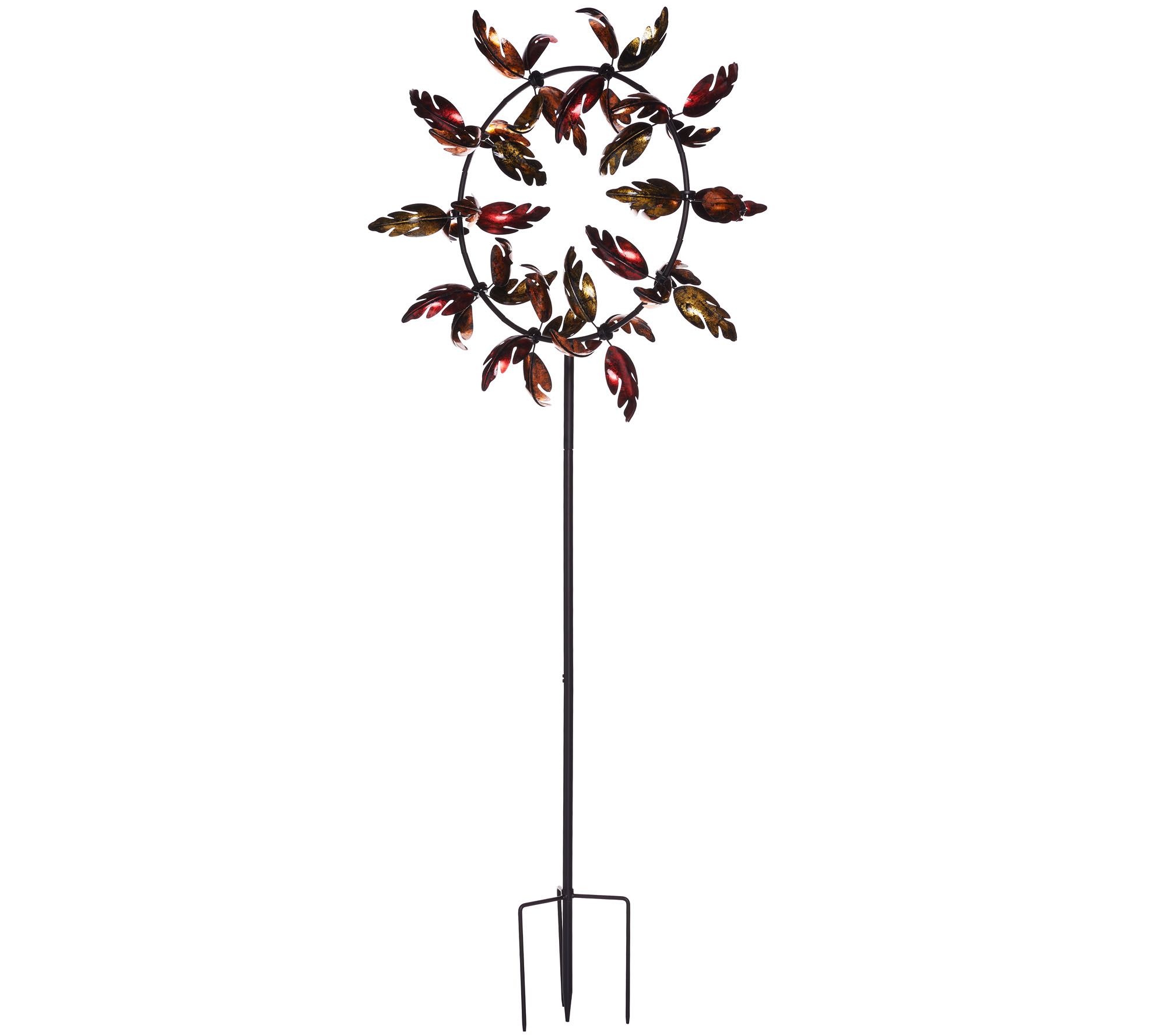 Larger spaces call for the oversized scale of this wind spinner by Plow & Hearth. Painted and hammered metal leaves of multiple colors cup the air to create drama and movement in your garden or yard. From Plow & Hearth.