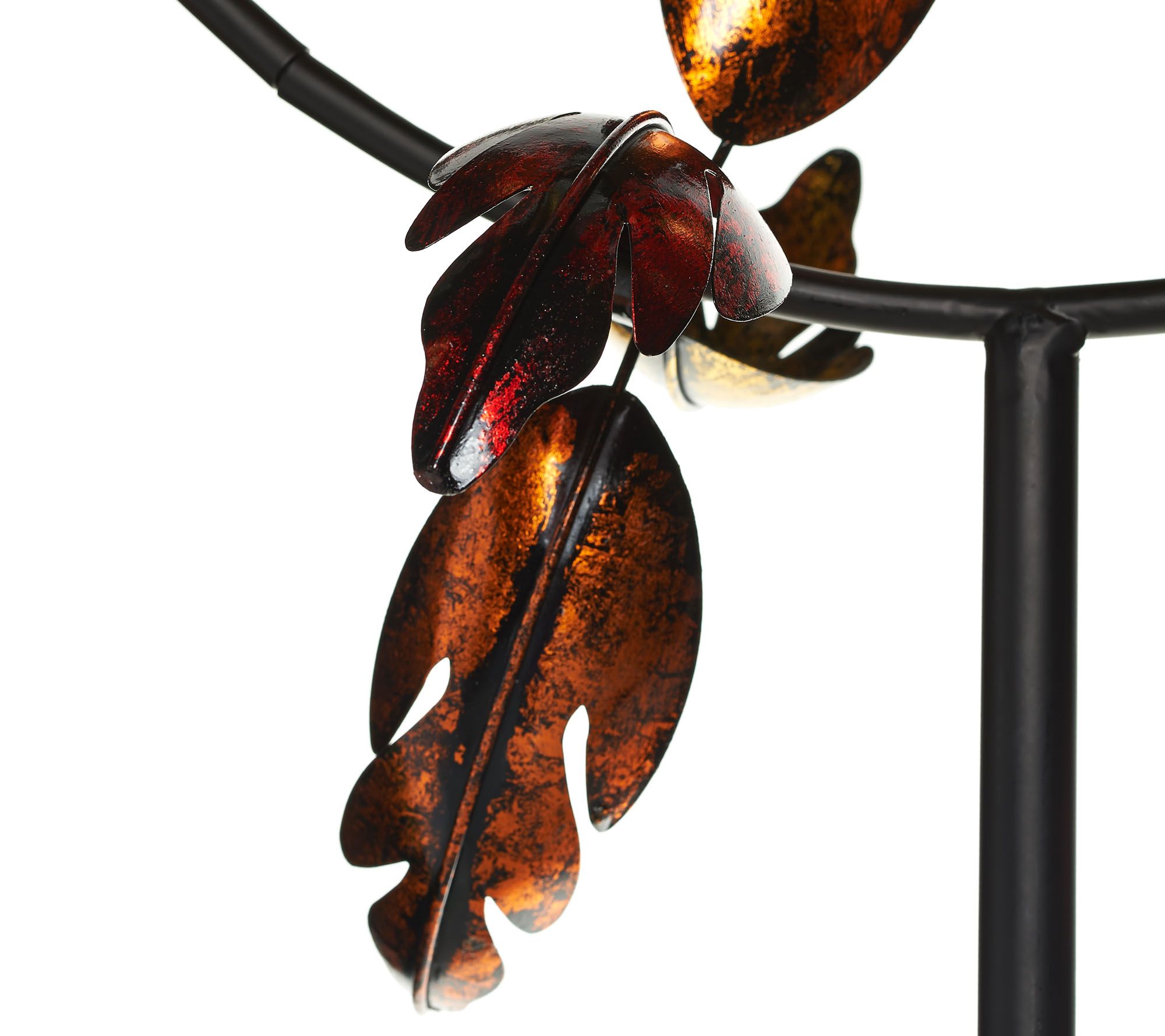 • Painted and hammered metal leaves in multiple colors