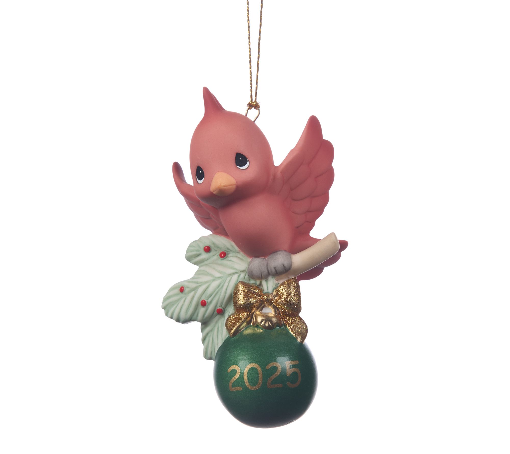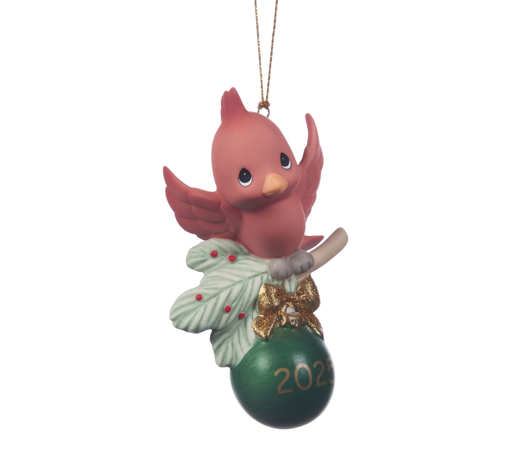 Celebrate the magic of the holidays with this charming porcelain ornament, featuring a joyful cardinal perched on a holly branch and a gleaming green bauble proudly displaying the year 2025. Whether hung on your tree or gifted to a bird enthusiast, this keepsake adds a festive touch while commemorating cherished moments from the season. From Precious Moments.