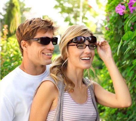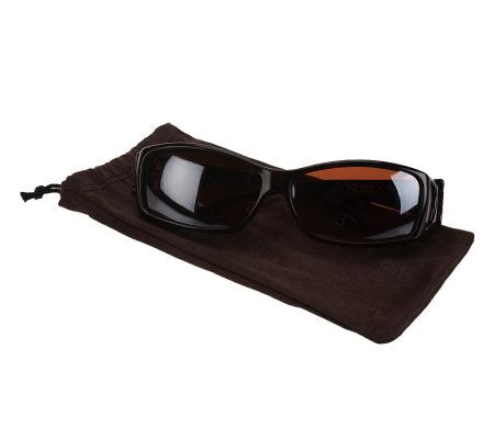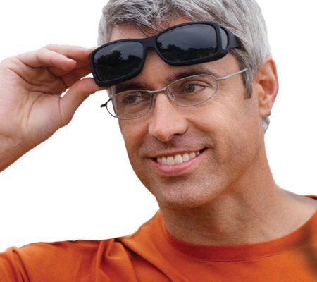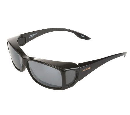 Sun down. Turn your prescription eyeglasses into sunglasses in a flash with these convenient fit-over frames. The durable, scratch-resistant lenses help protect eyes from the sun's harmful rays. And with this set of two, you can keep a pair in the car and a pair in your purse or beach bag. From PolarShield.