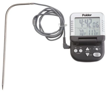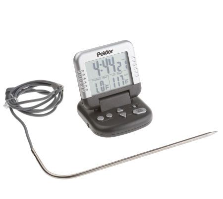 Dazzle with perfectly cooked dinners using this creative culinary tool. Digital temperature readouts and a timer let you make everything just right. The 43" long wire probe withstands high heat and offers flexibility and versatility for everything from entrees to candy confections. From Polder.