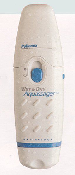 Luxuriate in the shower with this Pollenex Wet and Dry Aquassager, a waterproof, cordless massger designed to work underwater. Its non-slip grip makes it ideal for shower or bath use. This massager also works dry, thanks to its all-purpose massage head. Three attachments enhance the massage experience. A convenient drawstring travel bag is also included.