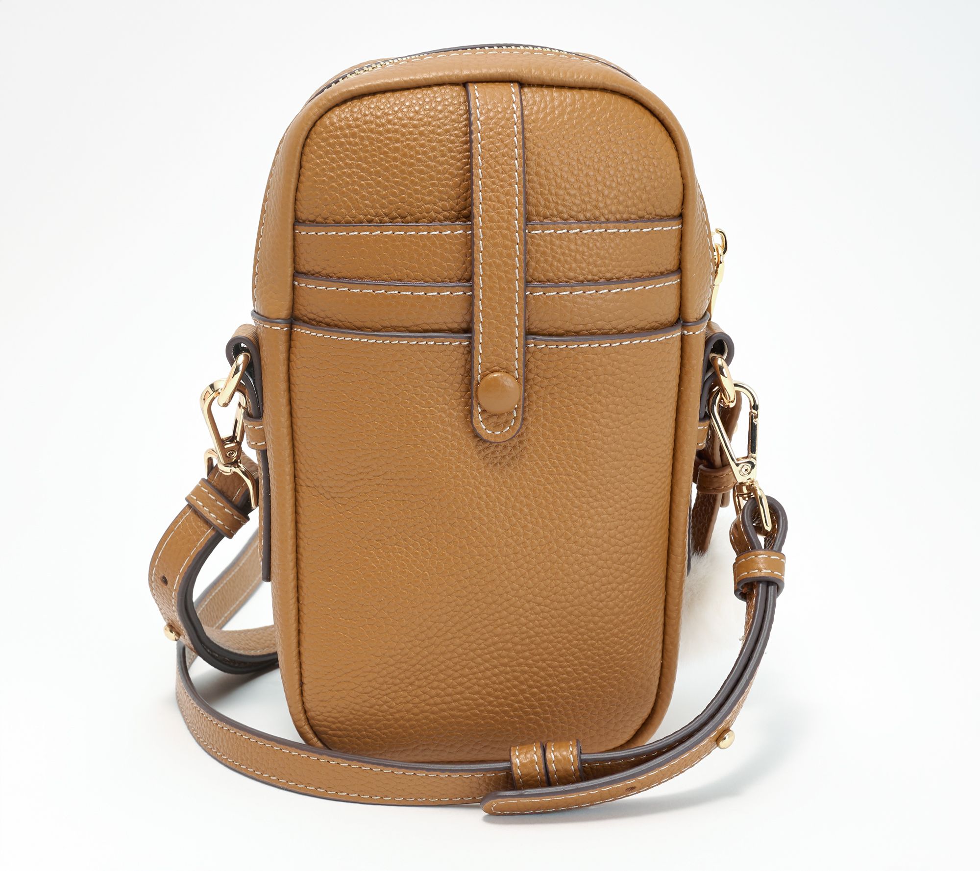 Head out for the day with your essentials close at hand -- this leather phone case brings sophistication and practicality wherever you go. The adjustable straps let you switch up your look and customize the fit whether you're running errands, commuting, or meeting friends. Secure cards and accessories in dedicated slots and pockets for quick access without missing a beat. From Pom Pom London.