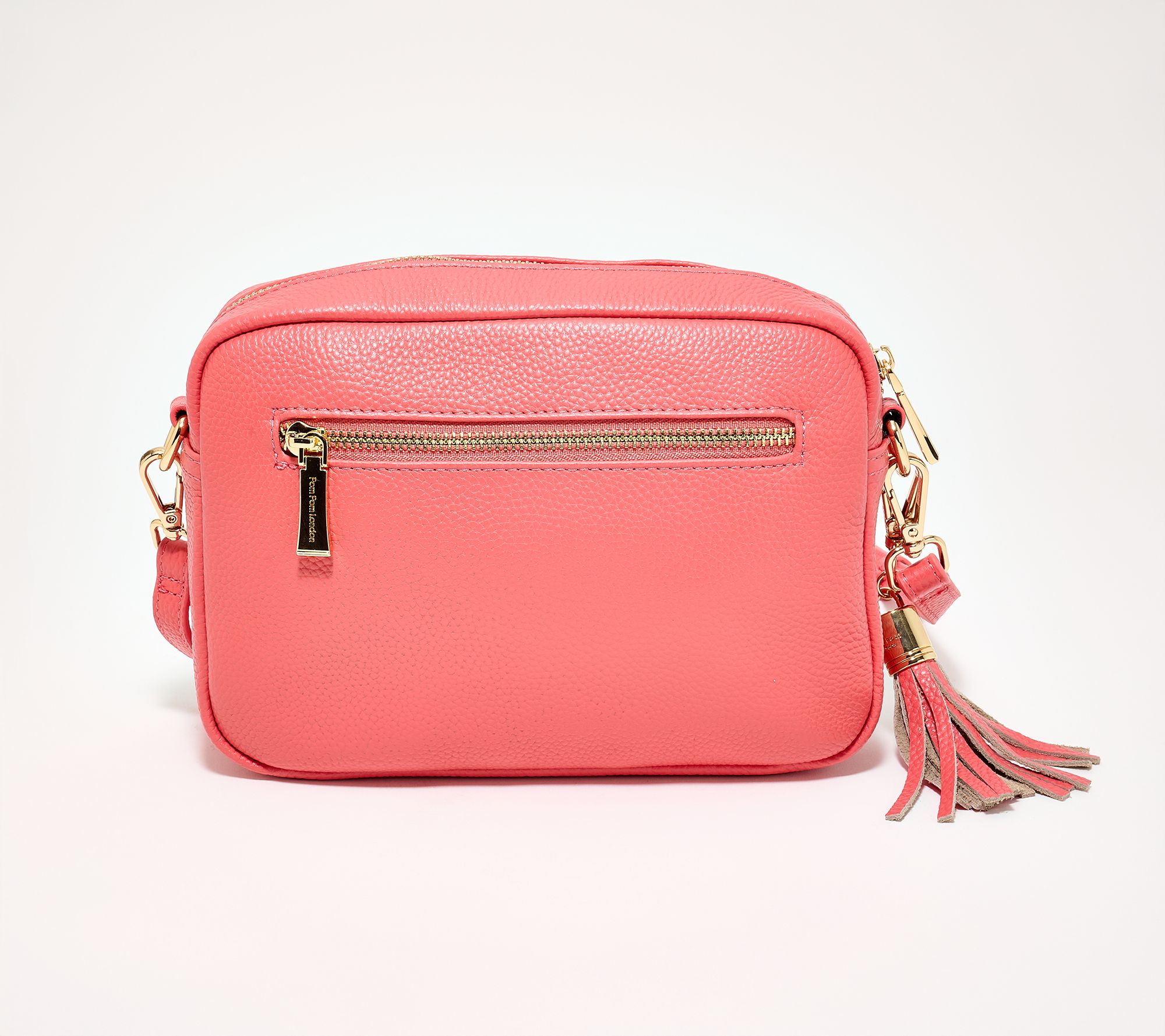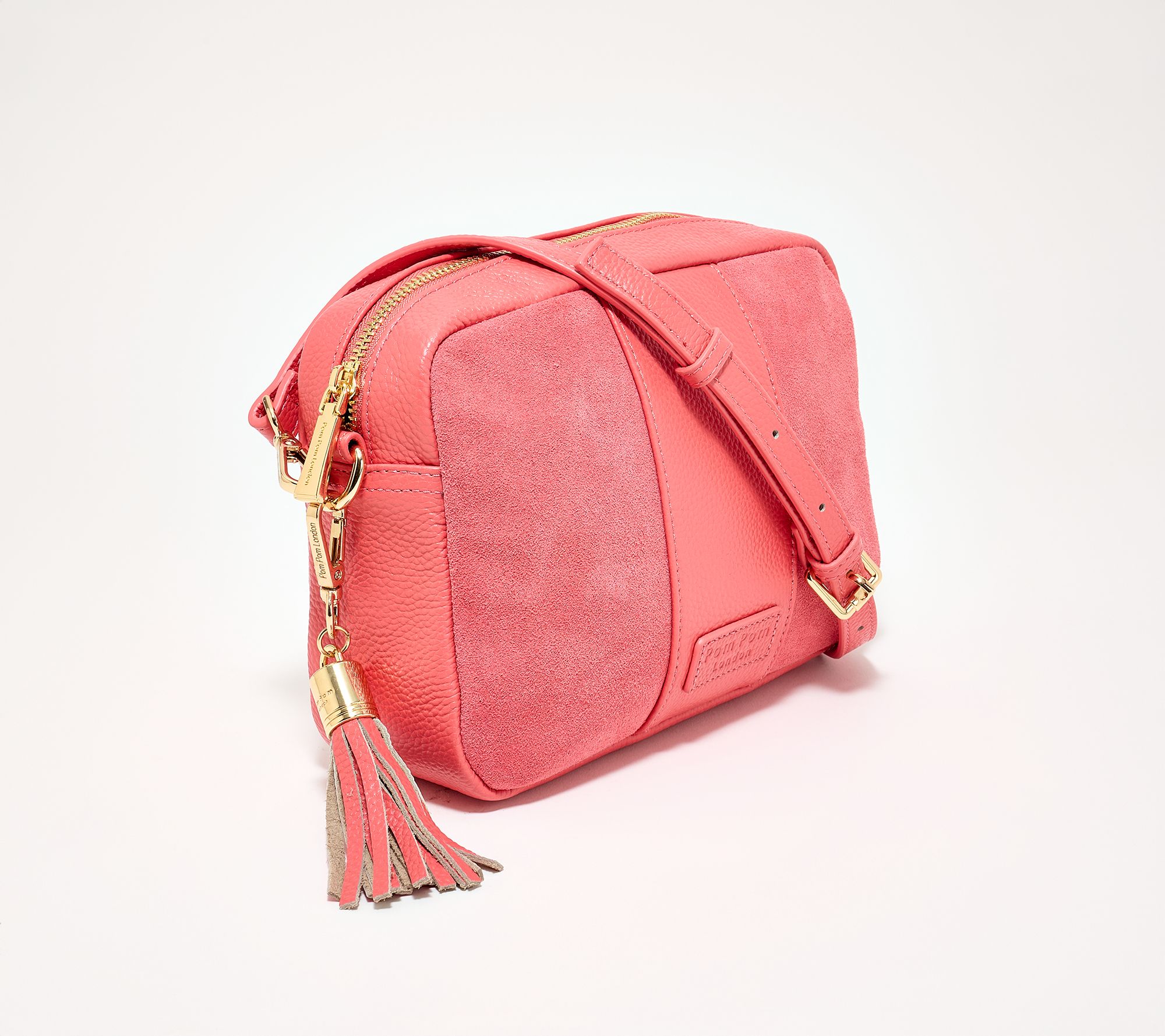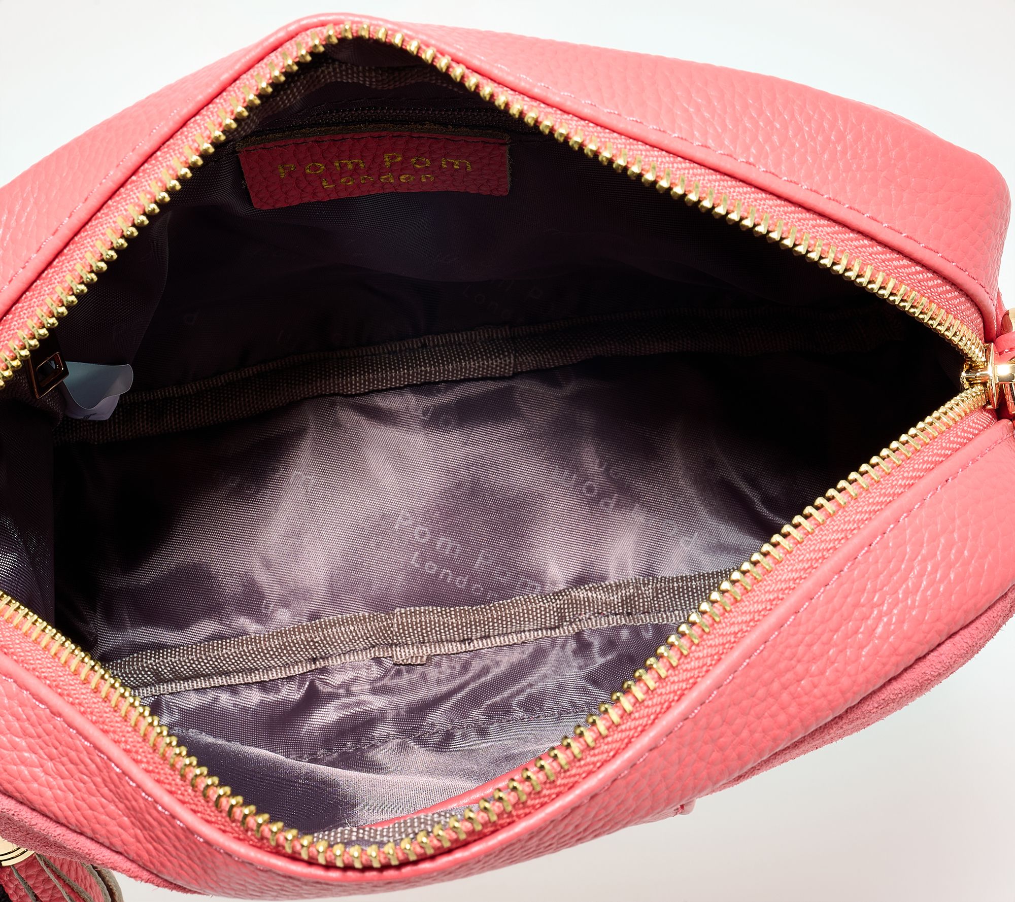 Running from place to place is effortless with this chic crossbody at your side. With interchangeable leather and fabric straps, it customizes your look and comfort, while zippered compartments keep your daily essentials secure and organized no matter where the day takes you. From Pom Pom London.